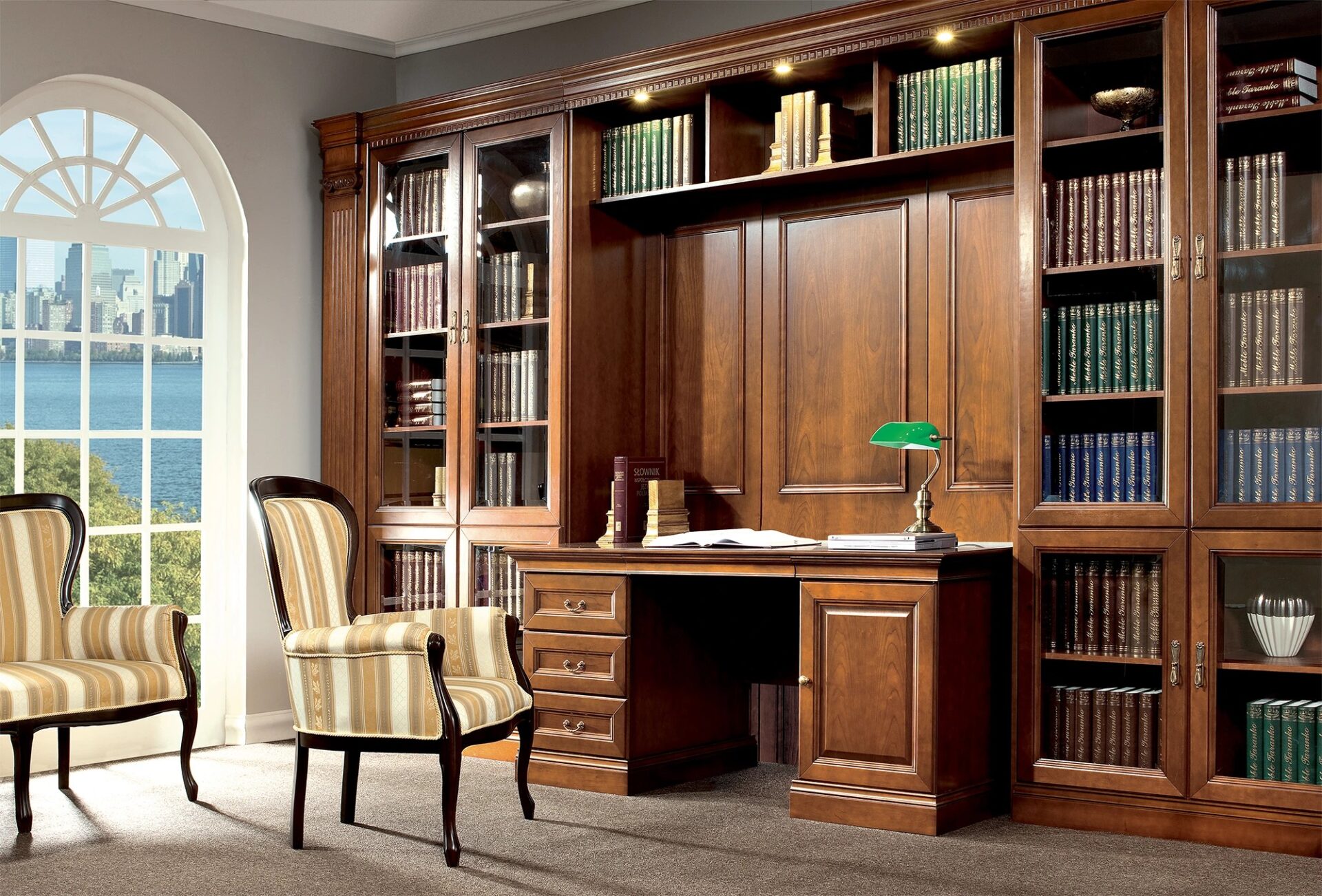 В этой коллекции производитель Taranko использует классические формы, красивый, уникальный, новый цвет ореха. В производстве применяются лучшие технологии и материалы высочайшего качества, что отвечает ожиданиям клиентов как в плане красоты мебели, так и в плане комфорта. Коллекция включает множество полок, как закрытых, так и открытых, что позволяет максимально эффективно использовать пространство офиса. В этой коллекции вы также найдете комоды, столы, перегородки и вспомогательные панели, чтобы ваш офис был оформлен как единое целое. Фасад: массив дерева, натуральный шпон.