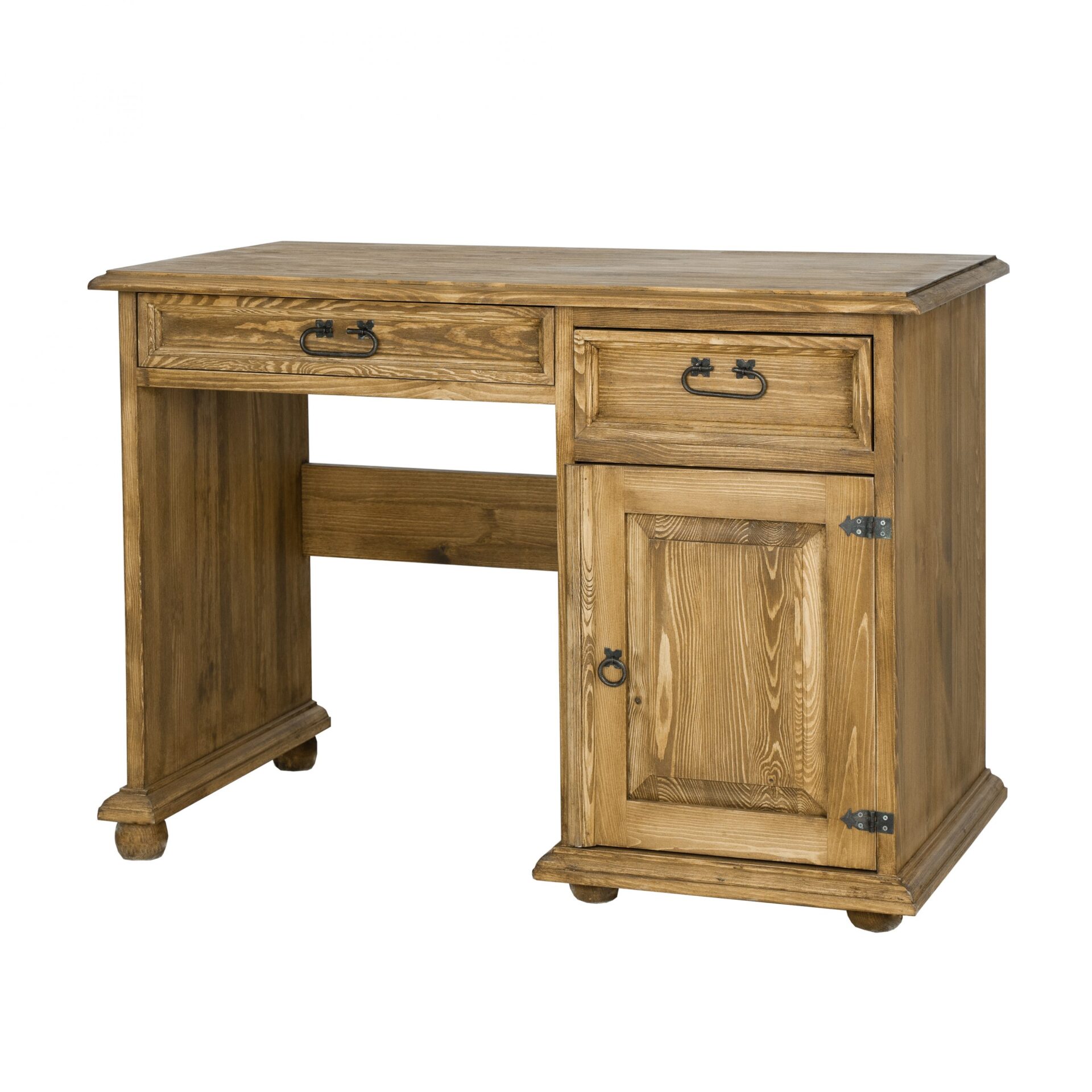 Стол BR701 с вощеным покрытием — это предмет мебели, идеально подходящий для домашнего офиса. Выполненный в деревенском стиле, он полностью изготовлен из массива сосны. Он имеет просторную столешницу, под которой расположены два выдвижных ящика на деревянных направляющих (или ящик и полка для клавиатуры). Кроме того, стол оснащен одним шкафом с дверцами, каждая из которых имеет полку внутри. Он отличается прочной и надежной конструкцией. При его изготовлении использованы изготовленные вручную металлические петли и ручки с эффектом состаривания. Стол BR701 создаст теплую, неповторимую атмосферу в вашем офисе, положительно влияя не только на ваше самочувствие, но и на качество вашей работы.