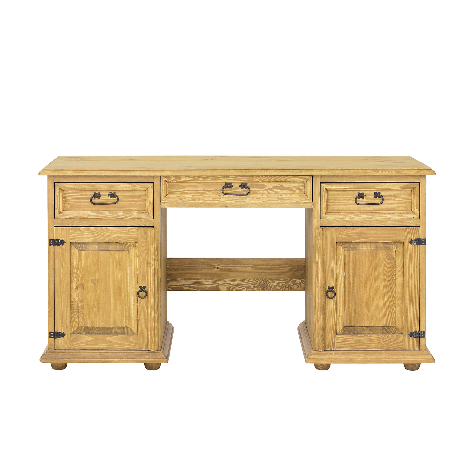 Деревянный письменный стол BR705 — практичный предмет мебели для домашнего офиса. Этот стол в стиле ретро состоит из двух шкафов с центральной полкой и выдвижными ящиками справа и слева. Кроме того, под столешницей расположен еще один удобный ящик или полка для клавиатуры. Выполненный в деревенском стиле, стол полностью изготовлен из массива сосны. Используются изготовленные вручную металлические петли и ручки с состаренной отделкой. Стол BR705 создаст теплую, неповторимую атмосферу в вашем офисе, положительно влияя не только на ваше самочувствие, но и на качество вашей работы.
