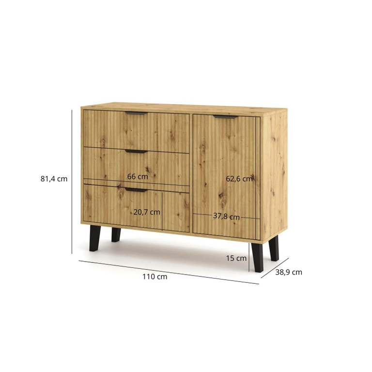 BORG DUO komoda, 1 stalčius, 3 vnt., ąžuolo spalvos