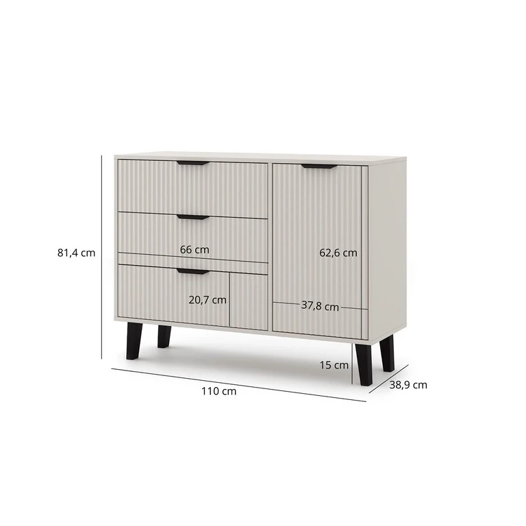 Коллекция: Borg Duo В собранном виде: Нет Ширина: 110 см Высота: 81,4 см Глубина: 38,8 см Количество дверей: 1 Количество ящиков: 3