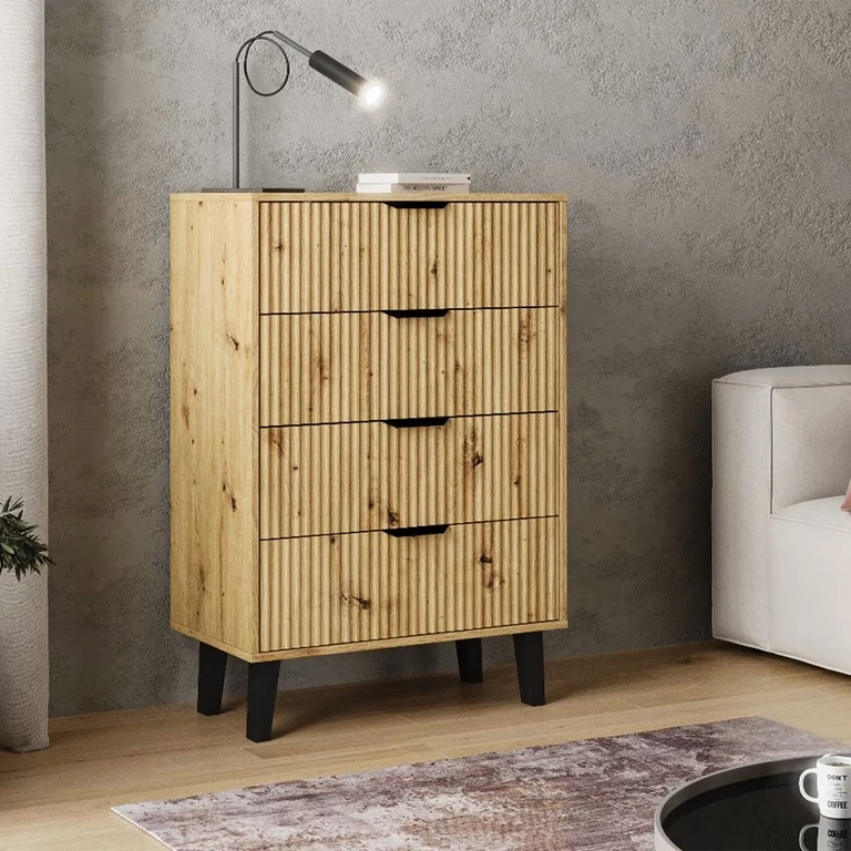BORG DUO komoda, 4 stalčiai, ąžuolo spalvos