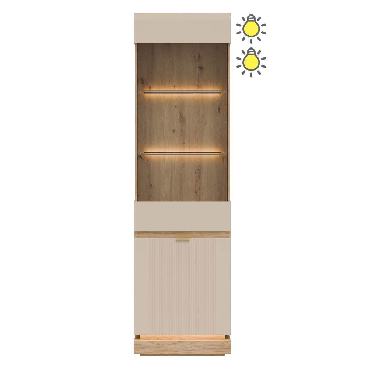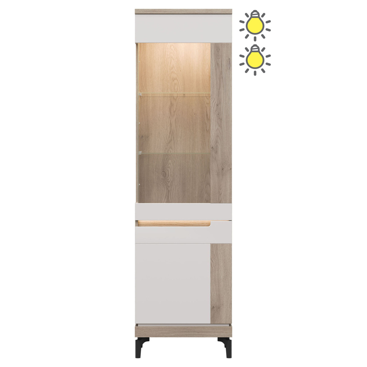 Витрина BRANDO B05 L/R идеально дополнит вашу гостиную или столовую, а её прочная конструкция выделяет её среди других. За стеклянной дверцей вы найдете две подсвечиваемые стеклянные полки, которые можно использовать в качестве подставок. Нижняя часть шкафа предназначена для хранения предметов, которые вы не хотите выставлять напоказ. Шкаф универсален: вы можете выбрать, открываются ли дверцы вправо или влево. Современный вид шкафа достигается благодаря фрезерованным фасадам, которые служат ручками. Универсальный дизайн сочетается с другими цветами, открывая безграничные возможности для оформления. Шкаф идеально подходит как для сочетания с другими предметами из серии BRANDO, так и в качестве самостоятельного элемента, адаптируясь к дизайну интерьера вашей комнаты.