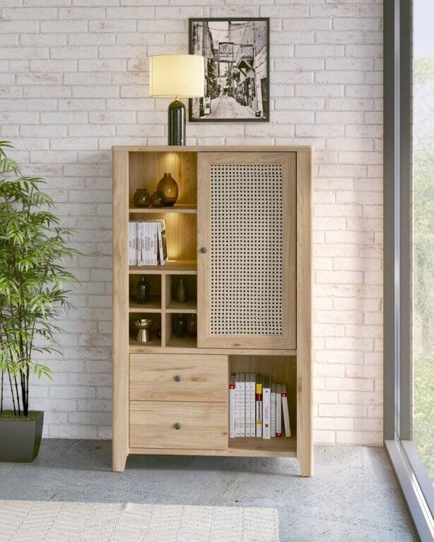 Откройте для себя уникальную гармонию дизайна и практичности, выбрав комод Cestino VNNK01 – предмет мебели, который добавит элегантности и функциональности вашему интерьеру. Это воплощение хорошего вкуса и практичного комфорта в одном идеально спроектированном изделии. Этот стильный комод размером 92,5 см в ширину, 150 см в высоту и 42 см в глубину создан для любителей современных, но в то же время теплых и выразительных интерьеров. Изготовленный из ламинированной ДСП и более тонкой МДФ, отделанный теплым оттенком Jackson Hickory и украшенный узором Amadeus, этот комод привнесет в комнату естественную атмосферу. Этот предмет мебели подойдет как для гостиных, так и для столовых, домашних кабинетов и детских комнат, сочетая в себе элементы стиля бохо. Он предлагает как открытые, так и закрытые полки за сплошной передней панелью, поэтому вы можете сами решить, что выставить напоказ, а что спрятать.