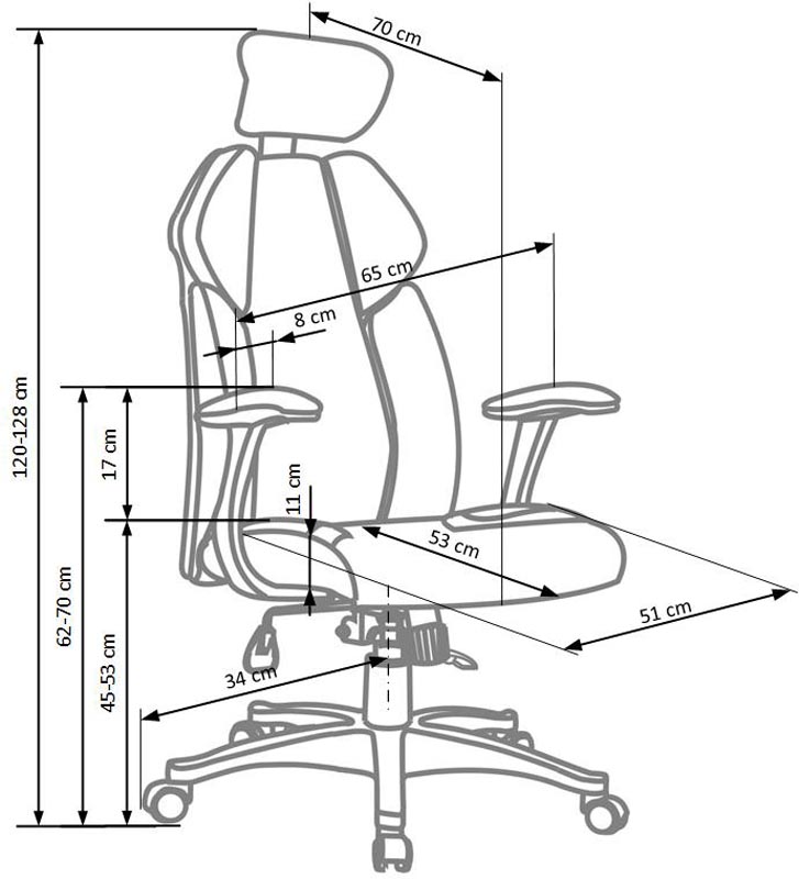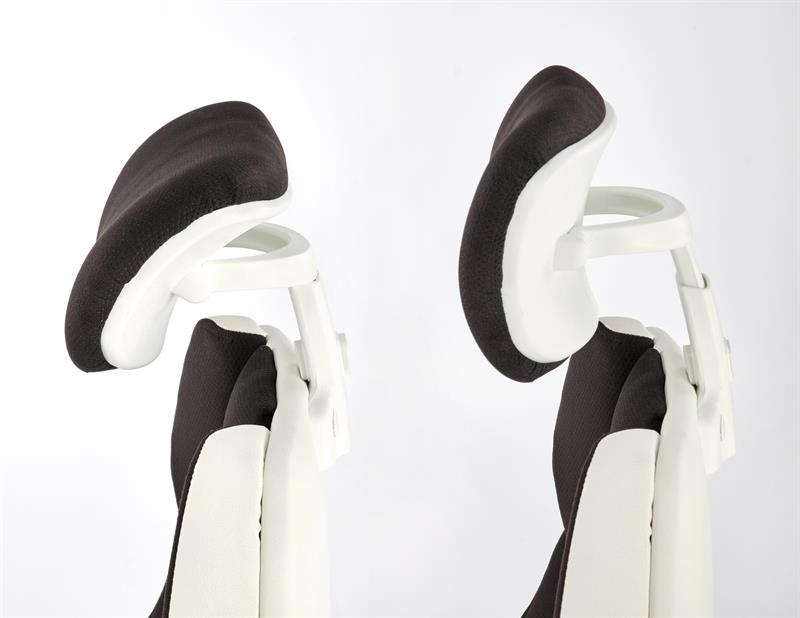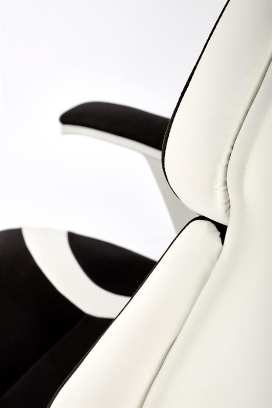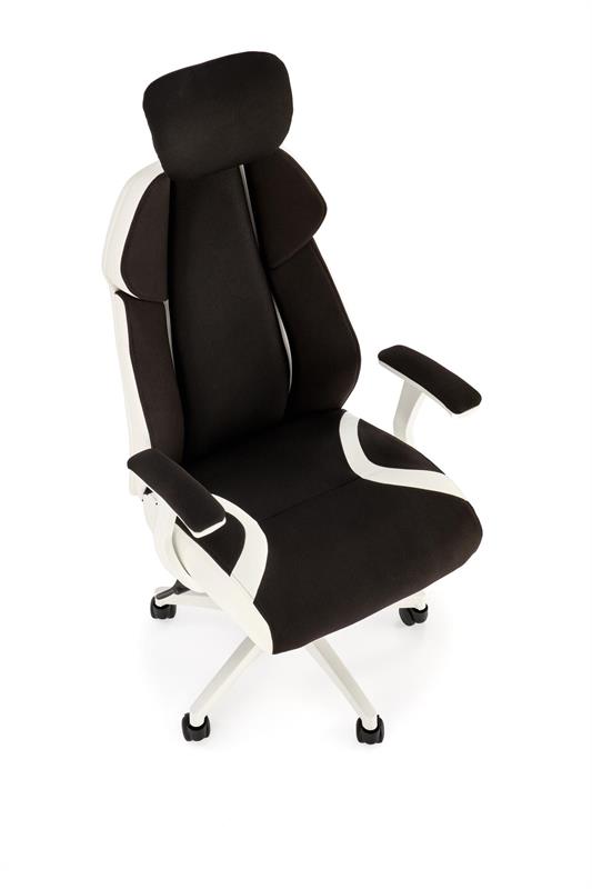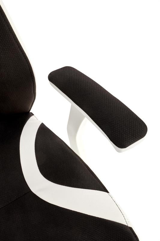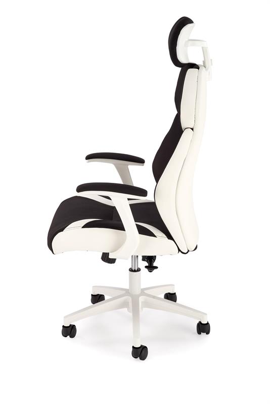 Многоблочный механизм, регулируемый подголовник, размеры: 65/70/120-128/45-53 см, ткань / экокожа, цвет: черный / белый