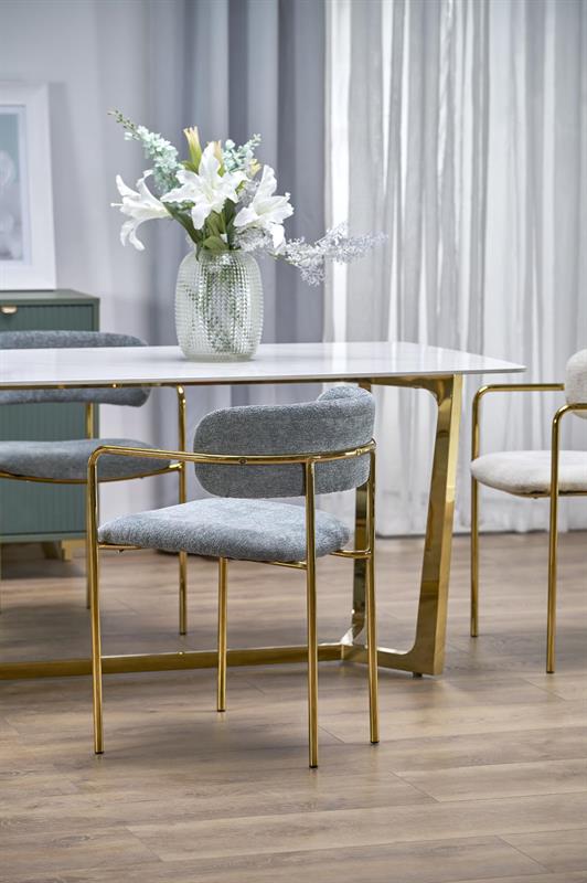 CLEMENTE stalas, spalva: stalviršis – baltas marmuras, kojos – auksinės