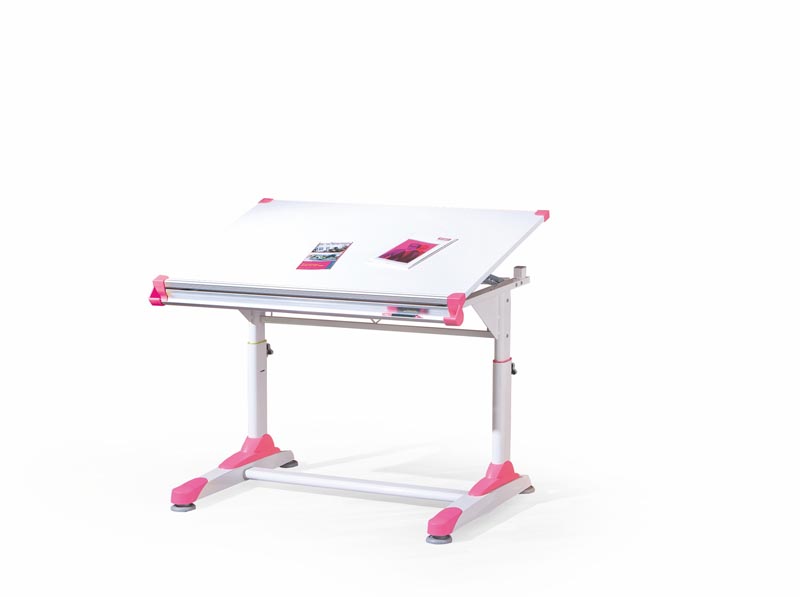Стол с регулируемой высотой и углом наклона столешницы, размеры: 100/66/69÷84 см, материал: лакированный МДФ / окрашенная сталь, цвет: белый / зеленый / розовый (в комплекте 2 комплекта декоративных элементов).