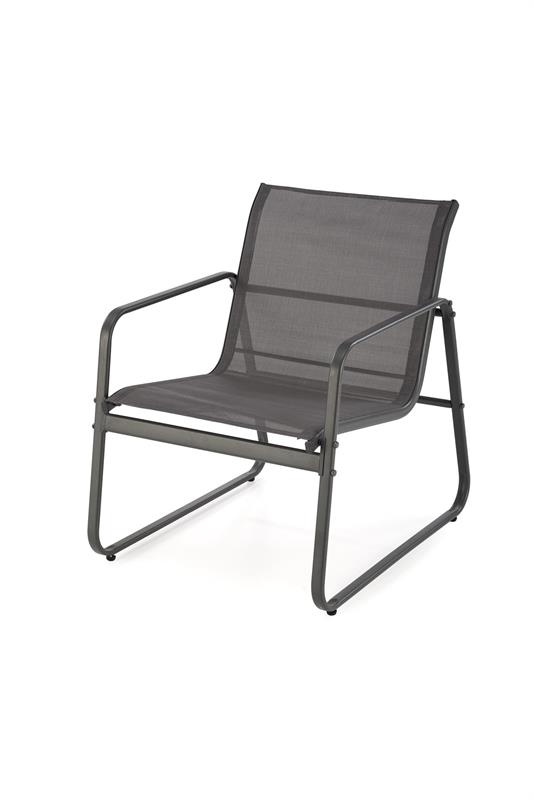 Размеры: диван - 114/74/76/38 см, кресло - 60/74/76/38 см, журнальный столик - 75/45/41 см, садовый комплект (диван + 2 кресла + журнальный столик), материал: сталь с порошковым покрытием / стекло / сетка, цвет: темно-серый