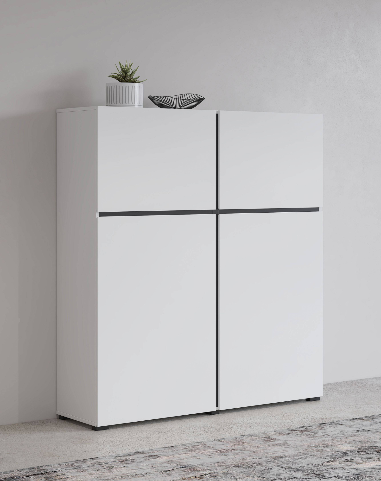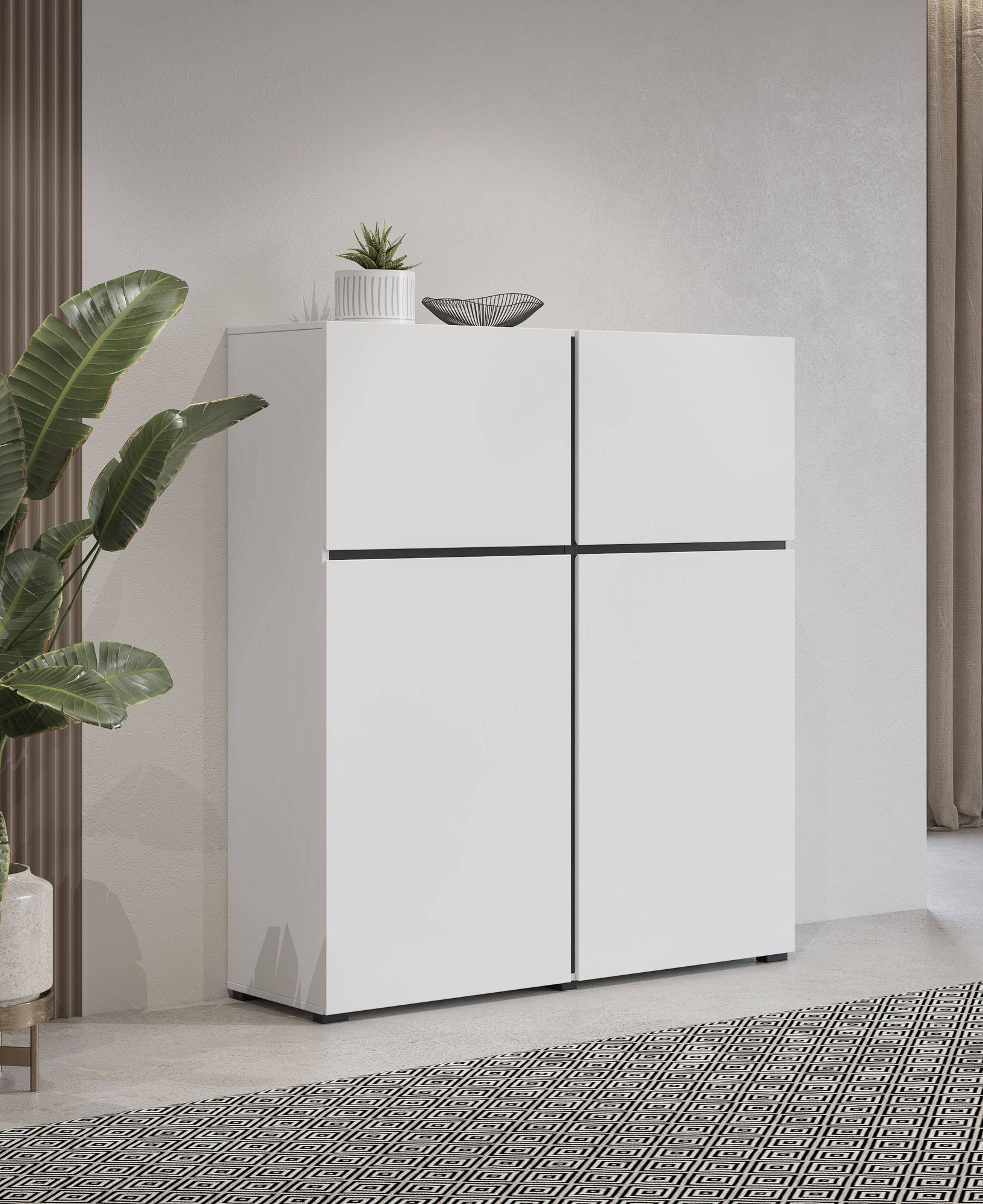 Откройте для себя элегантность и современность с высоким комодом Cross от Helvetia. Этот уникальный предмет мебели привнесет в ваш интерьер тонкий контраст и гармонию матового белого и черного цветов. Его минималистичный дизайн непременно привлечет внимание и станет идеальным дополнением к любому современному интерьеру. Комод шириной 119 см и высотой 139 см предлагает все необходимое пространство для хранения ваших вещей. Четыре дверцы позволяют легко организовать пространство, обеспечив желаемую эргономичность. Простой дизайн делает этот предмет мебели идеальным для современных и минималистичных интерьеров, добавляя устойчивости и элегантности. Изготовленный из ламинированной плиты, комод прочен и прост в уходе, гарантируя долгий срок службы. Ламинированная отделка в матовом белом и черном цветах – это квинтэссенция современного стиля, добавляющая изысканности любому помещению, независимо от его назначения.