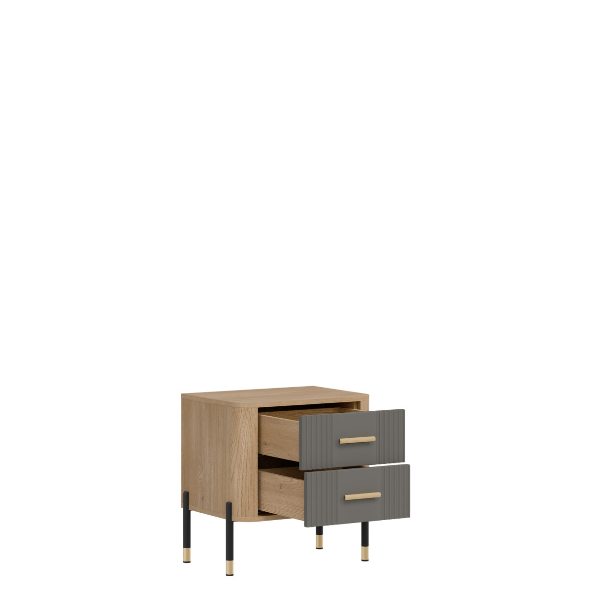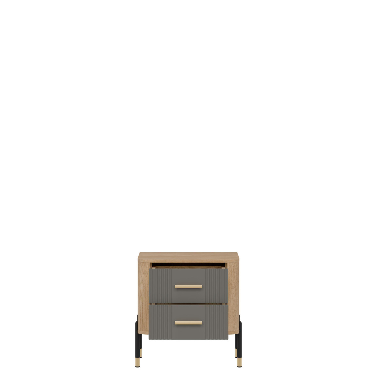 Ширина 56 см, глубина 40 см, высота 57 см. Вес изделия с упаковкой 18,70 кг. Код/символ производителя DT21. Название коллекции DANTE. Название в системе b2b: DANTE DT21 OAK CR. Комплект прикроватных тумбочек матово-серого цвета. Количество упаковок: 4. Стиль: Модерн. Комплектация: Инструкция по сборке / аксессуары для сборки. Сборка: Самостоятельная сборка. Цвет корпуса: Cremona Torro Oak. Материал корпуса: 16 мм ДСП / 32 мм МДФ. Материал верхней части корпуса: 16 мм ДСП. Материал нижней части корпуса: 16 мм ДСП. Материал задней стенки: 2,5 мм ХДФ. Цвет передней панели: Матово-серый. Материал передней панели: 18 мм МДФ. Передняя ручка: Материал, цвет: Металл. Черный или золотой. Система плавного закрывания ящиков: Стандартная. Направляющие для ящиков: Favorit Q2. Ножка: Нерегулируемая. Металлическая. Черно-золотая. Высота ножки: 118 мм. Количество ящиков: 2.