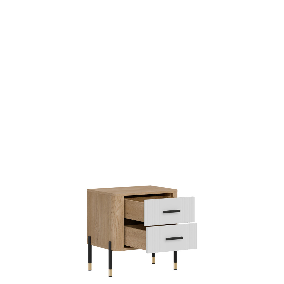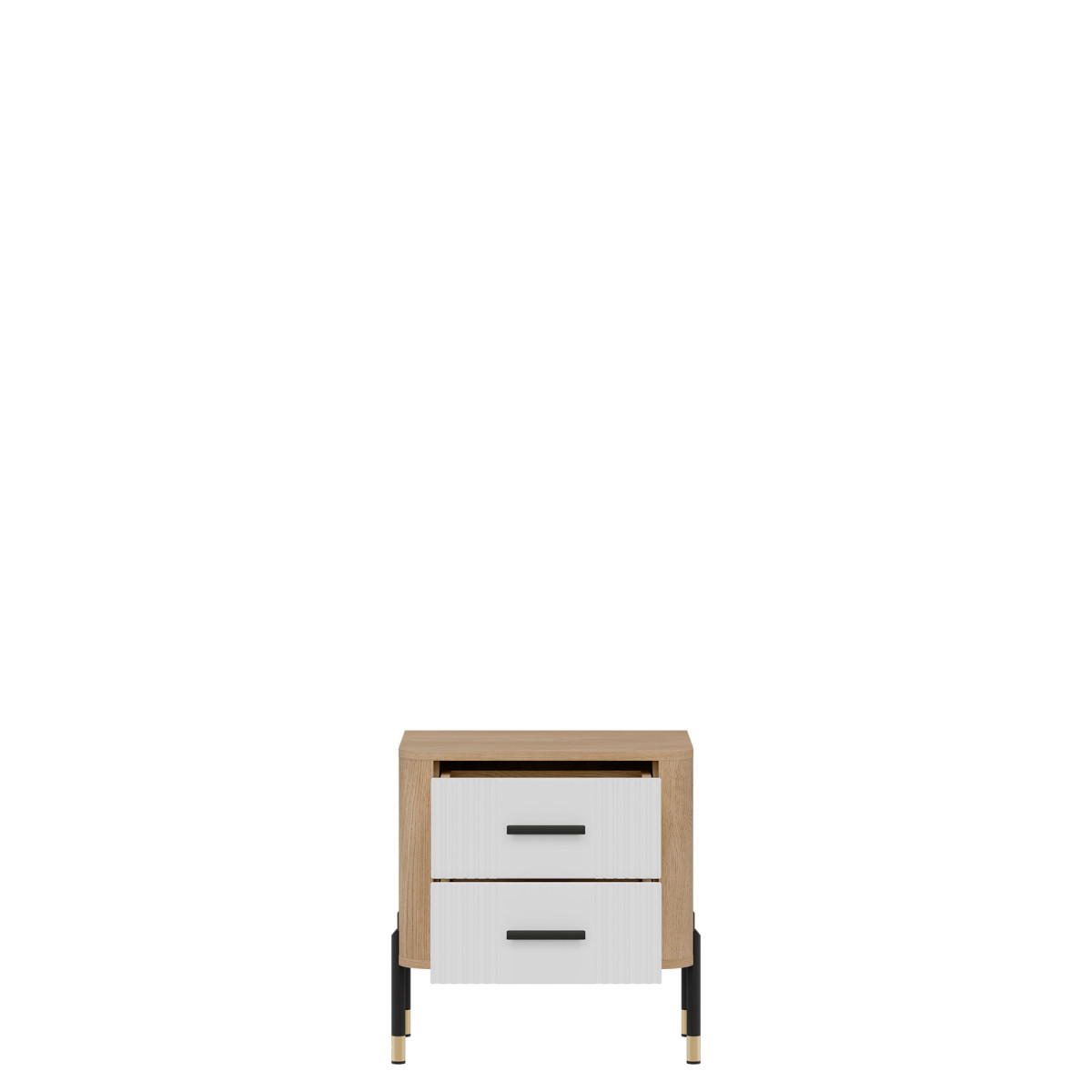 Ширина 56 см, глубина 40 см, высота 57 см. Вес изделия с упаковкой 18,70 кг. Код/символ производителя DT21. Название коллекции DANTE. Название в системе b2b: DANTE DT21 OAK CR. Комплект прикроватных тумбочек белого матового цвета Количество упаковок: 4 Стиль: Модерн Комплектация: Инструкция по сборке / аксессуары для сборки: Самостоятельная сборка Цвет корпуса: Cremona Torro Oak Материал корпуса: 16 мм ДСП / 32 мм МДФ Материал верхней части корпуса: 16 мм ДСП Материал нижней части корпуса: 16 мм ДСП Материал задней стенки: 2,5 мм ХДФ Цвет передней панели: Матовый белый Материал передней панели: 18 мм МДФ Ручка передней панели: Металл / Черный или золотой Система плавного закрывания ящиков: Стандартная комплектация Направляющие для ящиков: Favorit Q2 Ножка: Нерегулируемая / Металл / Черный – Золотой Высота ножки: 118 мм Количество ящиков: 2