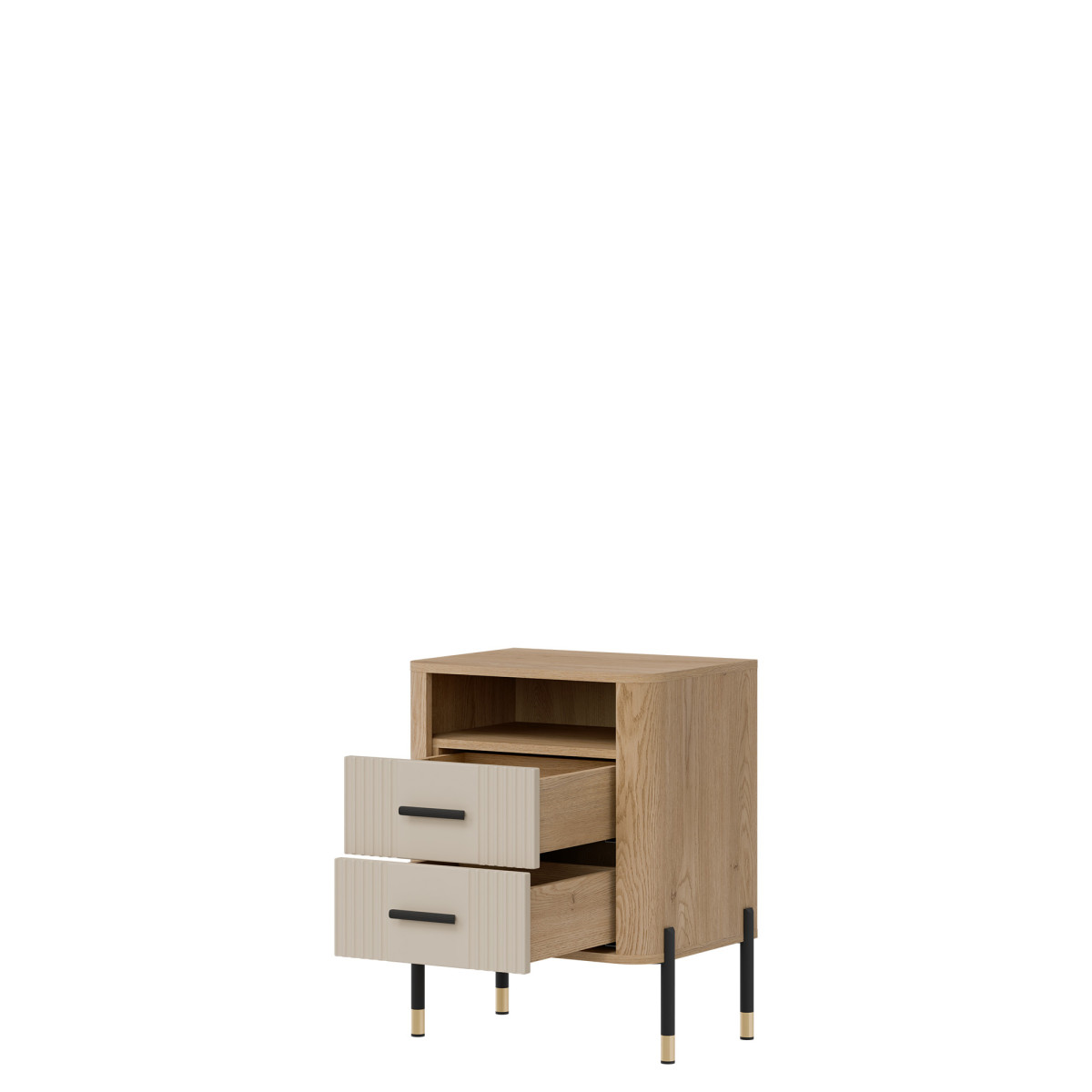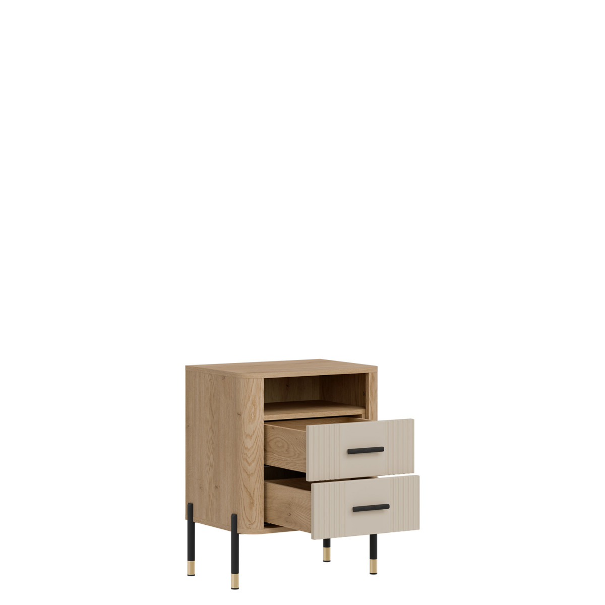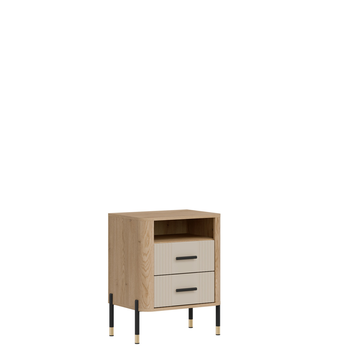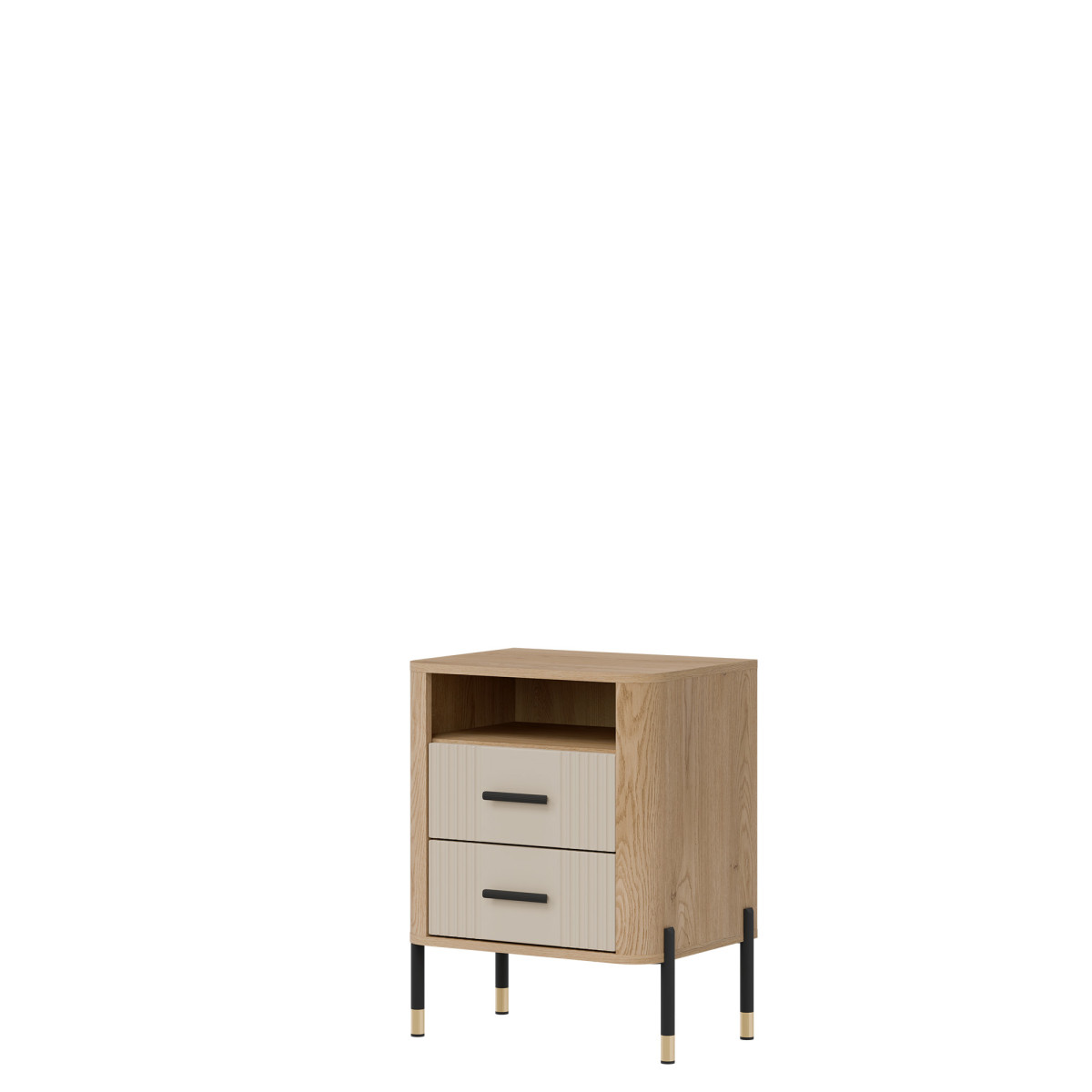 Прикроватная тумба Dante DT22 – функциональность и элегантность. Тумба Dante DT22 – идеальный выбор для тех, кто ценит продуманный дизайн, функциональность и современный стиль в компактном исполнении. Размещенная рядом с кроватью в спальне или диваном в гостиной, она всегда привнесет в интерьер элегантность с индустриальным оттенком. Широкая цветовая гамма, характерная для коллекции, в сочетании с теплым оттенком дерева создает гармоничную композицию, которая идеально дополнит как современные, так и лофт-интерьеры. Фасады двух просторных ящиков украшены ручками золотого или черного цвета на выбор, которые привлекают внимание и добавляют изысканности и гламура общему дизайну. Над ящиками расположен практичный открытый отсек, идеально подходящий для книги, пульта дистанционного управления, телефона или декоративных предметов. Это идеальное решение для тех, кто хочет, чтобы все необходимое всегда было под рукой. Прочная конструкция опирается на тонкие металлические ножки с деликатной золотой отделкой, придавая изделию легкость и современную элегантность. Dante DT22 – практичная деталь со вкусом. Прикроватная тумбочка — это больше, чем просто предмет мебели; это функциональный элемент интерьера, который подчеркнет характер помещения и сделает повседневное использование пространства еще более приятным.