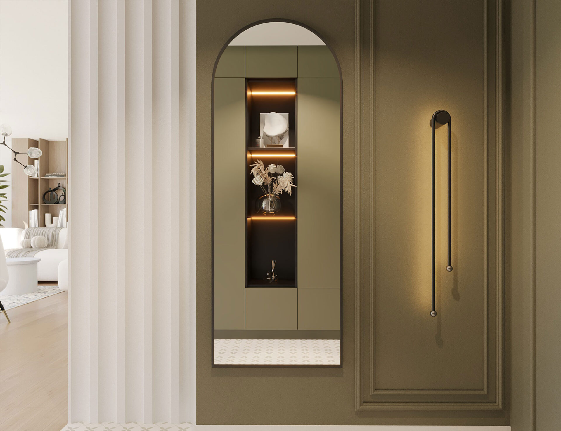 Зеркало Divva размером 60×160 см имеет закругленный верх. Его элегантный дизайн идеально впишется в самые разные интерьеры. Впечатляющие размеры обеспечивают полный обзор и визуально расширяют пространство. Прочная конструкция и высококачественные материалы гарантируют долговечность и стабильность. Это идеальное дополнение к спальне, гостиной или прихожей, выполняющее не только практическую функцию, но и эстетически дополняющее интерьер, добавляя элегантности и стиля.