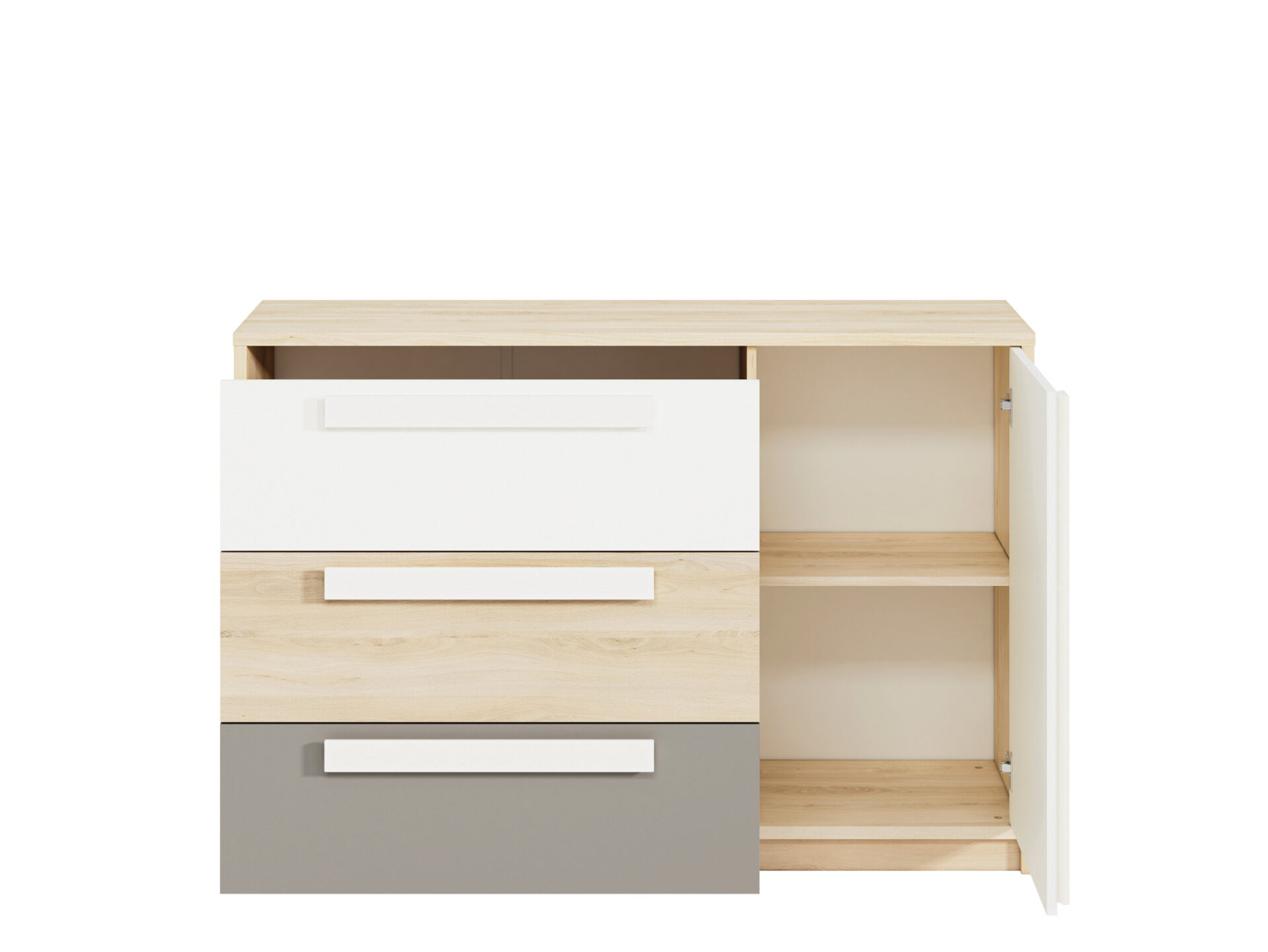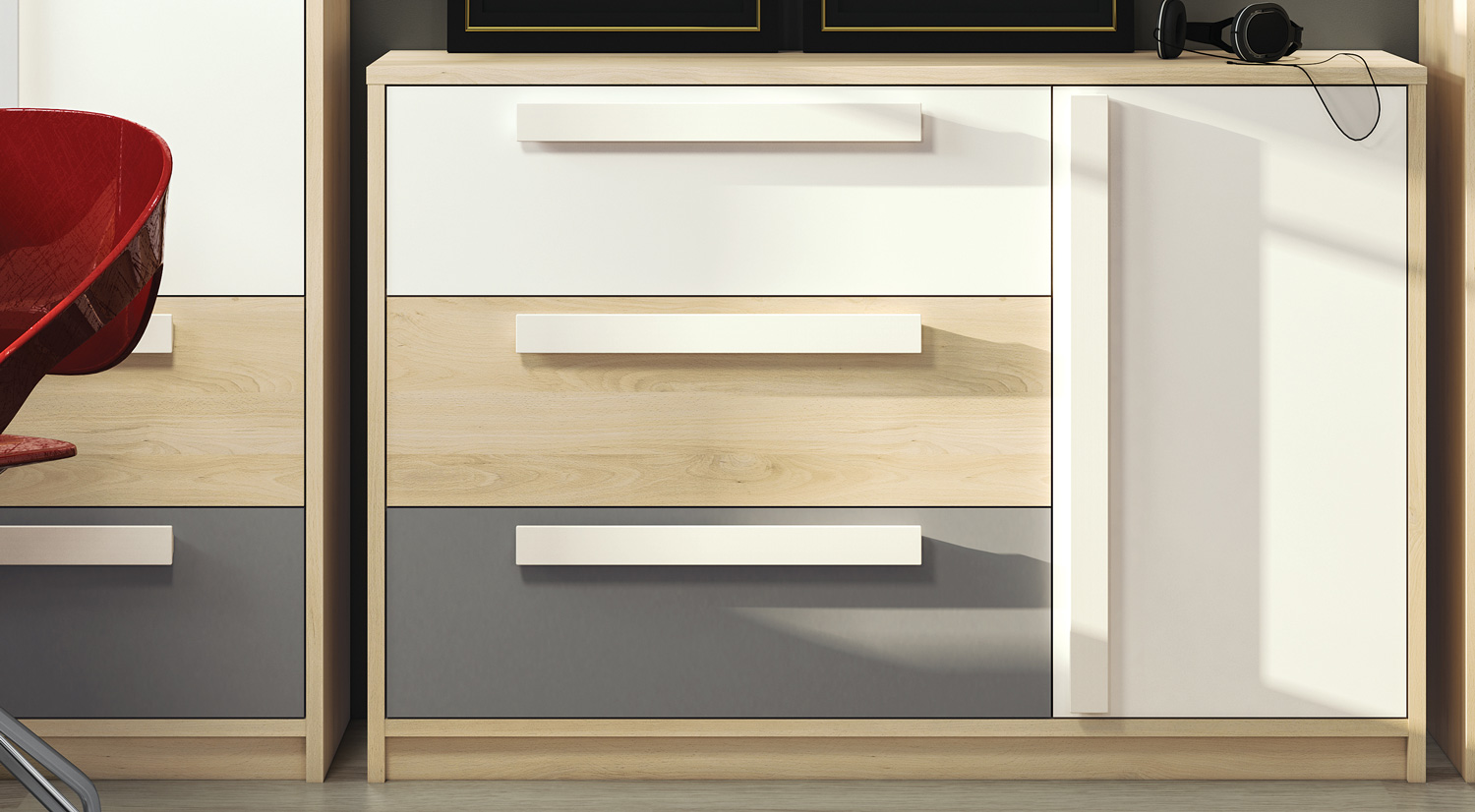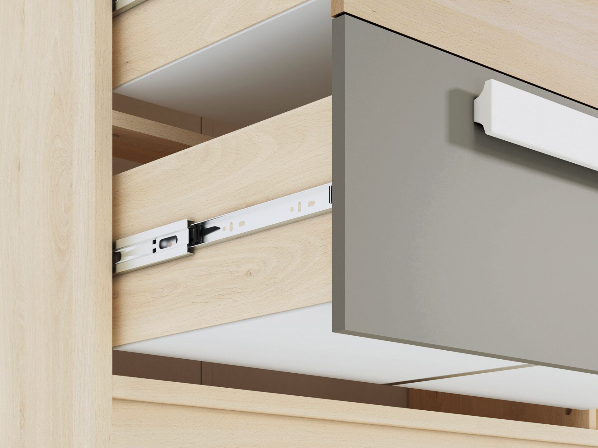 В каждой детской системе должен быть просторный комод, в котором можно хранить все сокровища малышей – от одежды до совершенно необычных предметов самых разных форм. Система выдвижных ящиков в нашем комоде DROP 08 оснащена выдвижными ящиками полного выдвижения и дополнительно усиленным дном, что значительно упрощает загрузку даже крупных предметов. Просторные полки и ящики, а также устойчивая к царапинам столешница из фьордского бука – лишь некоторые из преимуществ нашей конструкции. Кроме того, каждый комод полностью сбалансирован и безопасен для детей.