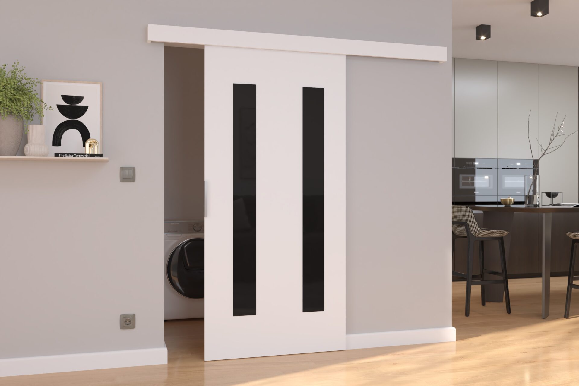 HERS 106 prie sienos tvirtinamos stumdomos durys, baltos/juodos, Lacobel ADRK
