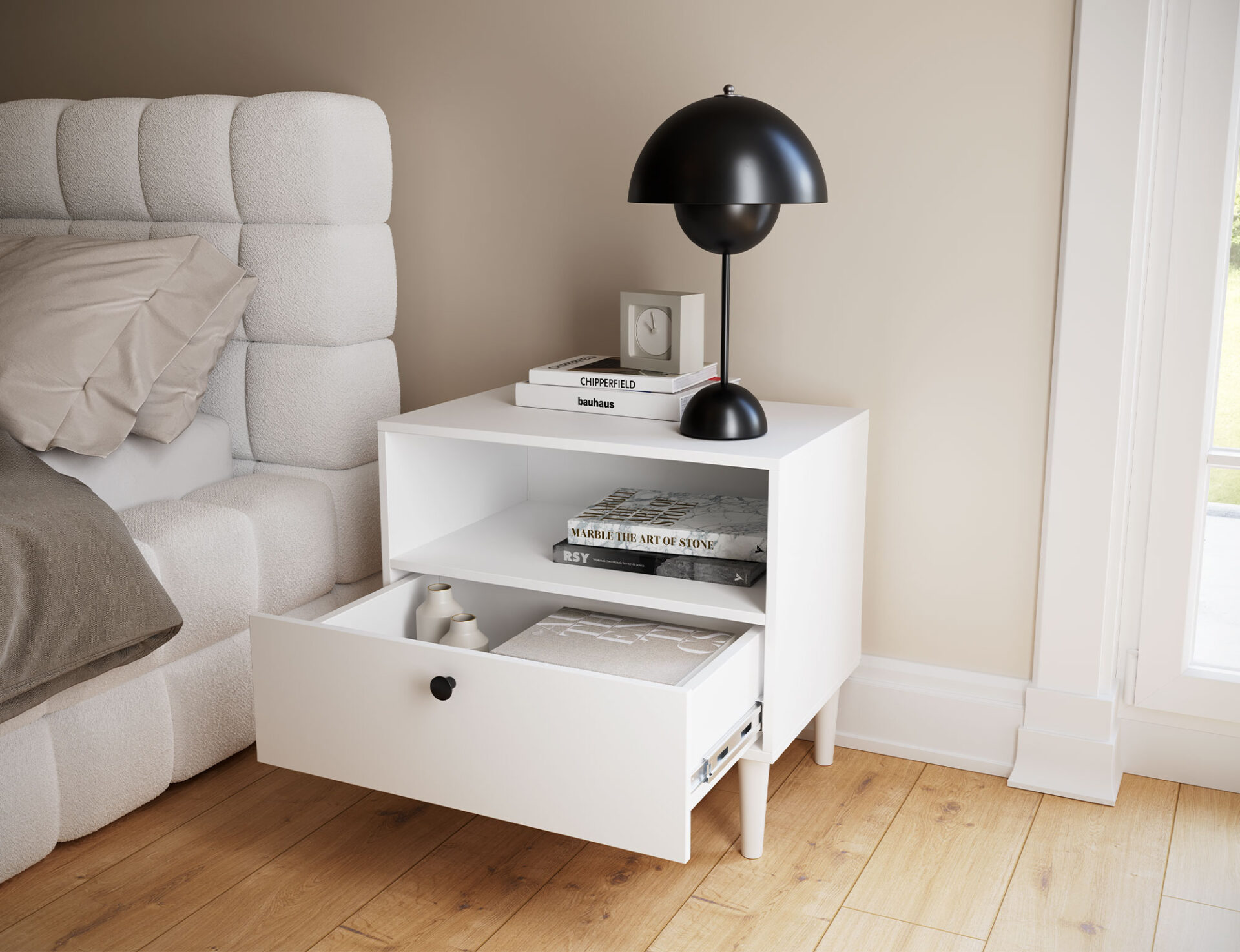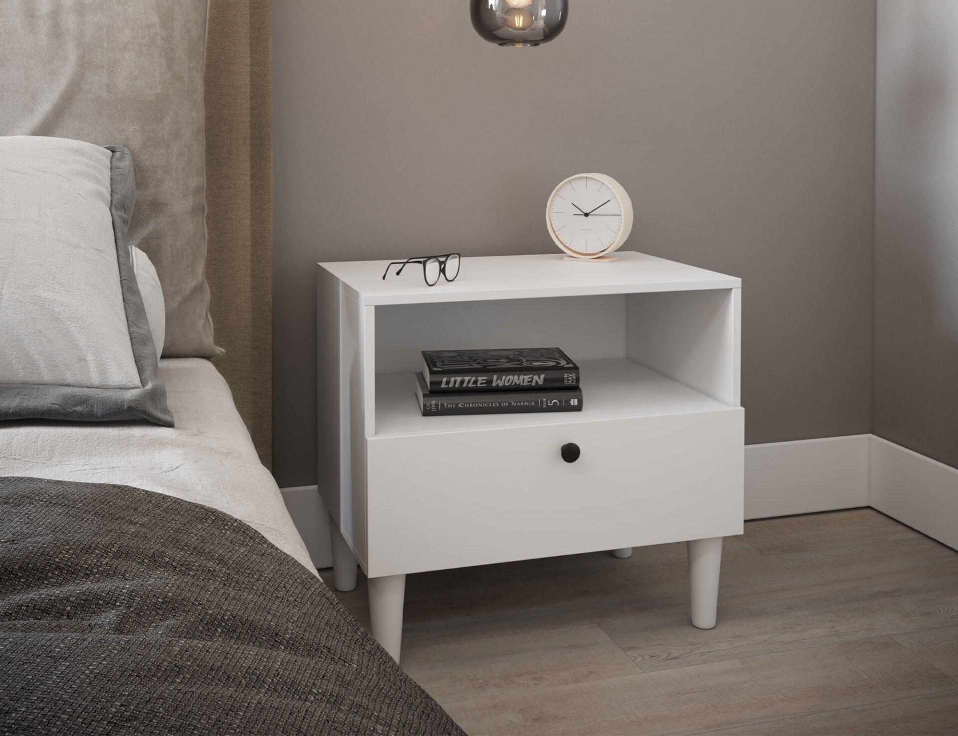 Прикроватная тумбочка Dullum — это функциональный и стильный предмет мебели размером 60 см в ширину, 55 см в высоту и 40 см в глубину. Она оснащена одной открытой полкой и одним выдвижным ящиком, обеспечивая практичное хранение необходимых вещей. Ее элегантный дизайн делает ее идеальным дополнением к любому интерьеру, добавляя современный штрих.
