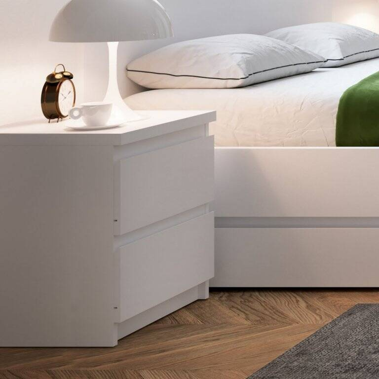 Откройте для себя прикроватную тумбу Fribo FRIK05 – 2S белого цвета – предмет мебели, который позволит вам в полной мере оценить преимущества функциональности, сохраняя при этом эстетику современного дизайна. Этот гармонично отделанный комод станет незаменимым предметом мебели в любой элегантно оформленной спальне, обеспечивая бескомпромиссное хранение. Его размеры: ширина: 40 см, высота: 51,8 см и глубина: 40 см, – это продуманный ответ на потребности пользователей, ценящих оптимизацию пространства. Изготовленная из высококачественной ламинированной ДСП, прикроватная тумба Fribo одновременно прочна и проста в уходе. Белый цвет придаст любой спальне ощущение свежести и простора, а универсальный цвет позволяет гибко сочетать ее с различными цветовыми палитрами. Современный стиль в сочетании с ламинированной ДСП как в корпусе, так и на передней панели создает изысканный и вневременной характер. Тщательно продуманная система без ручек подчеркивает минималистичную эстетику прикроватной тумбы Fribo, устраняя необходимость в традиционных ручках и обеспечивая удобство использования. Функциональные два выдвижных ящика на удивление вместительны, предоставляя достаточно места для хранения необходимых прикроватных принадлежностей и мелких предметов в пределах легкой досягаемости.