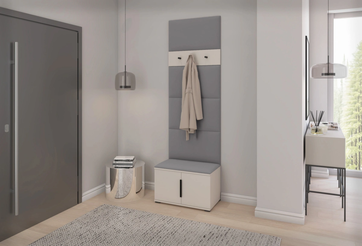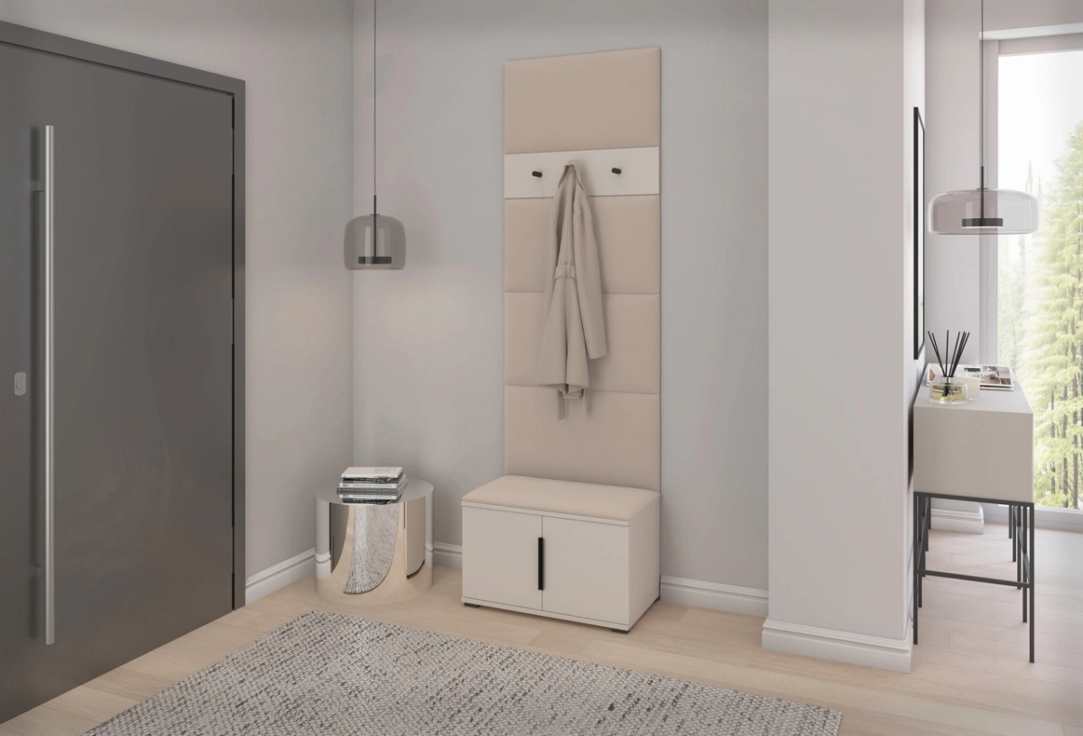 Мягкий шкаф Bianko 6 включает в себя обувной шкаф шириной 70 см, вешалку для одежды с крючками и мягкие панели: