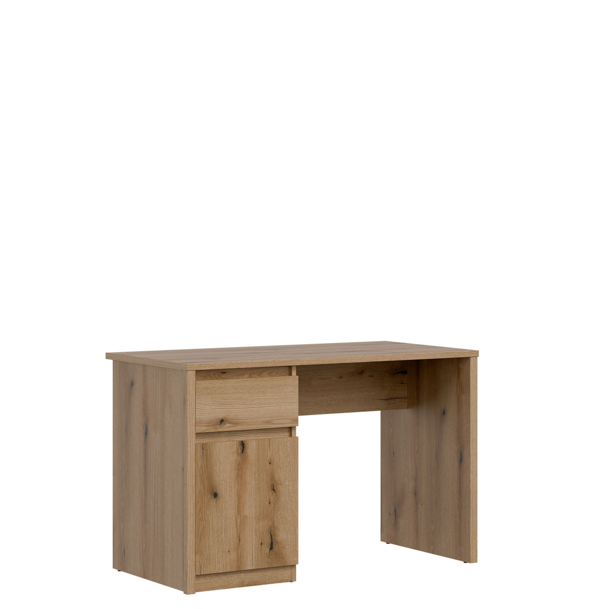 Ширина 118 см, глубина 60 см, высота 76 см, вес изделия с упаковкой 34,65 кг. Код производителя / символ IT11. Название коллекции INTENSO. Название в системе b2b: INTENSO IT11 EVOKE OAK / EVOKE OAK DESK KPL. Количество упаковок: 2. Стиль: Модерн. Комплектация: Инструкция по сборке / аксессуары для сборки. Сборка: Самостоятельная сборка. Цвет корпуса: Дубовый дуб. Материал корпуса / тип / толщина: ДСП 16 мм / ДСП 32 мм (2 x 16). Материал столешницы / материал / тип / толщина: ДСП 22 мм. Материал дна корпуса / материал / тип / толщина: ДСП 16 мм. Материал задней стенки / тип / толщина: ДСП HDF 2,5 мм. Цвет видимой части задней стенки: Дубовый дуб. Цвет передней панели: Дубовый дуб. Материал передней панели / тип / толщина: ДСП 16 мм. Передняя петля: 35 мм, регулируемая в трех плоскостях. Передняя ручка / отделка / цвет: Без ручки. Направляющие для выдвижных ящиков полного выдвижения. Ножка / отделка / цвет: Нерегулируемые / Мебельные направляющие / Пластик / Черный Количество дверей: 1 Количество ящиков: 1 Количество закрытых ниш: 1