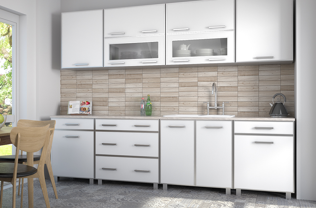 Кухня IRENA — это простой, элегантный и современный комплект кухонных шкафов, выполненный в очень популярном стиле. Этот комплект состоит из 8 отдельных шкафов, которые можно свободно комбинировать, обеспечивая максимальную функциональность и свободу расстановки. В комплект кухонного гарнитура входит столешница. Мебель новая, упакована в комплекты для самостоятельной сборки, с подробными инструкциями и аксессуарами. Верхние шкафы: 60-80-80-60 см