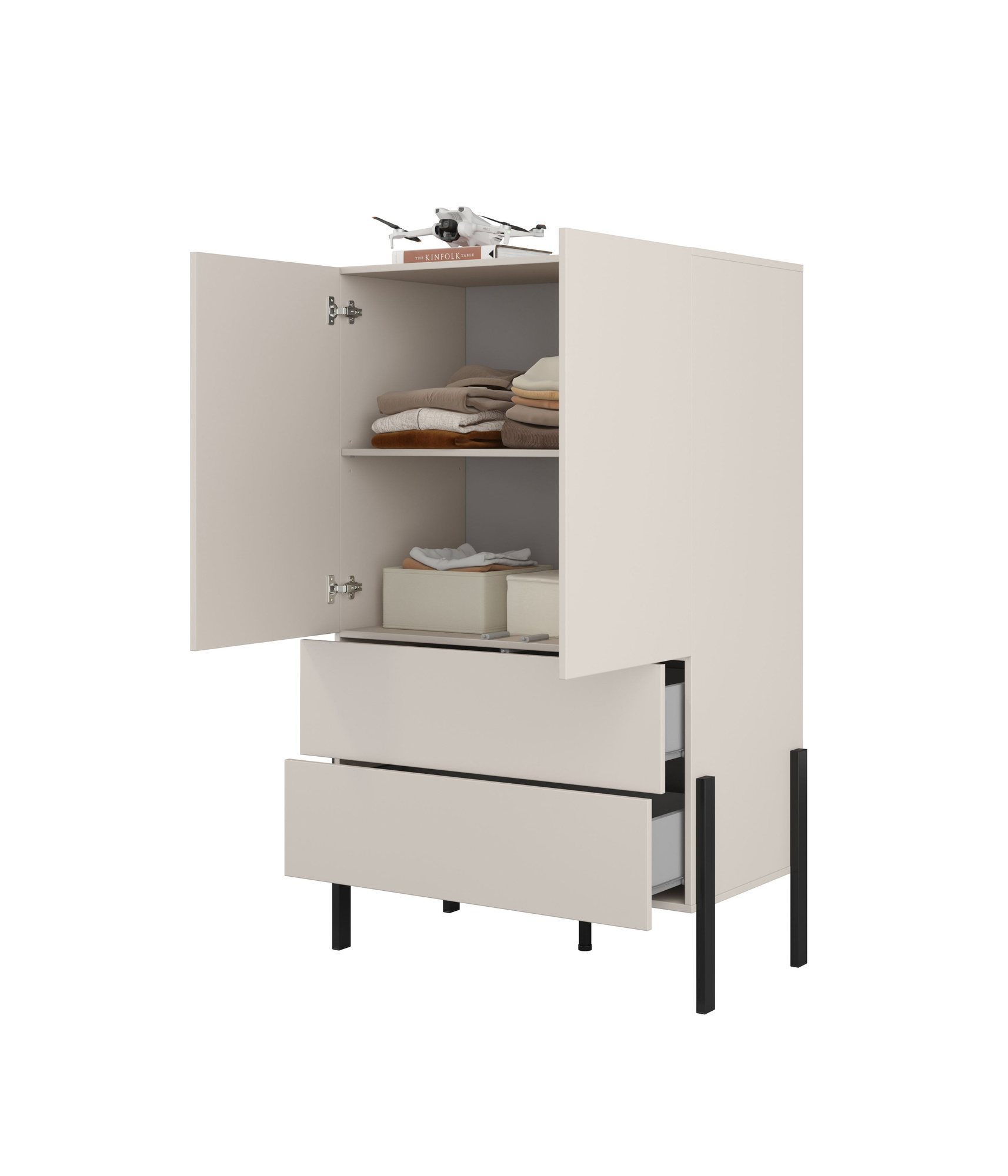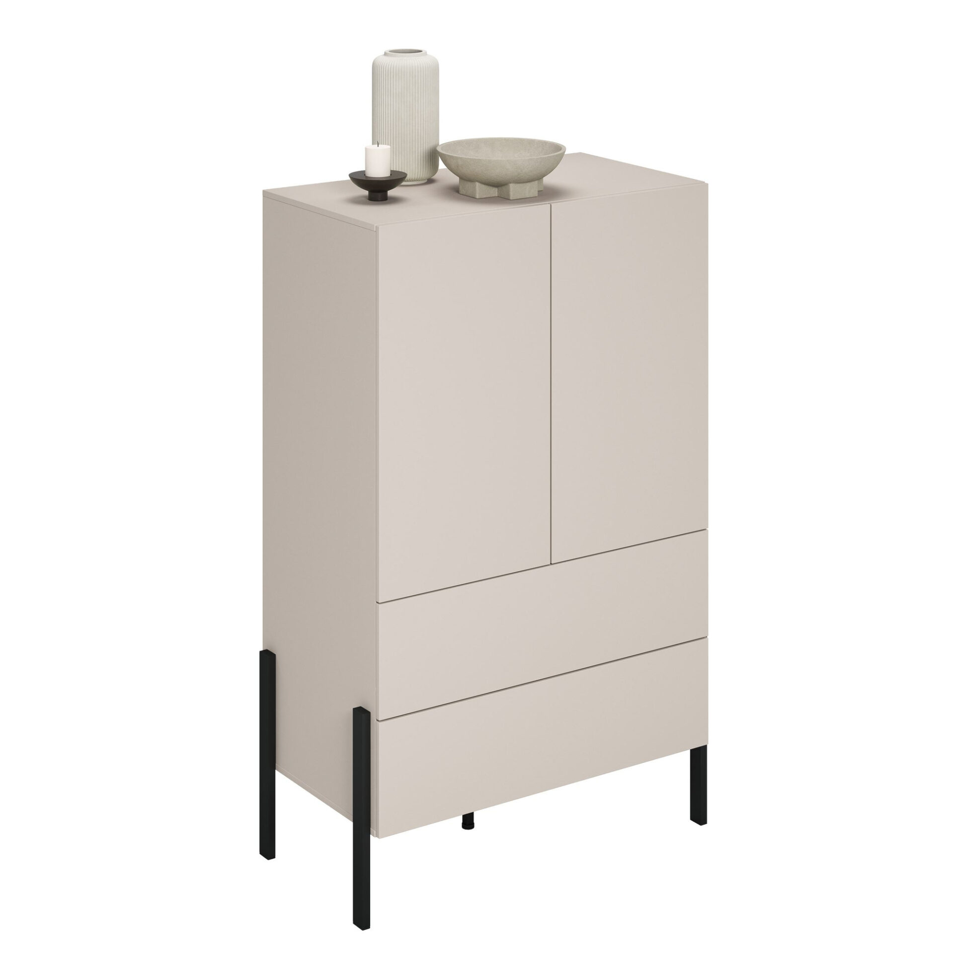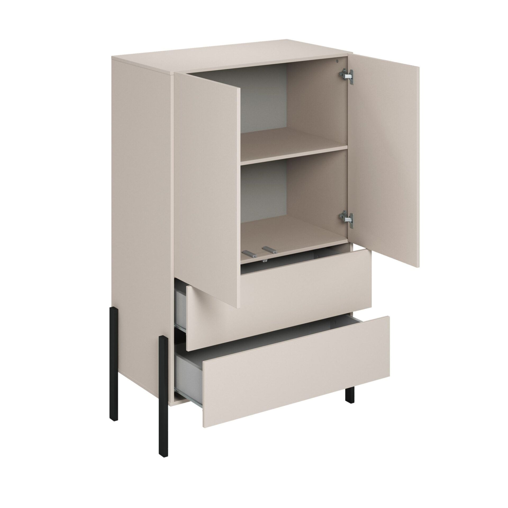 Jukon S – 2D2S komoda su stalčiais, kašmyro spalvos, juodos metalinės kojelės