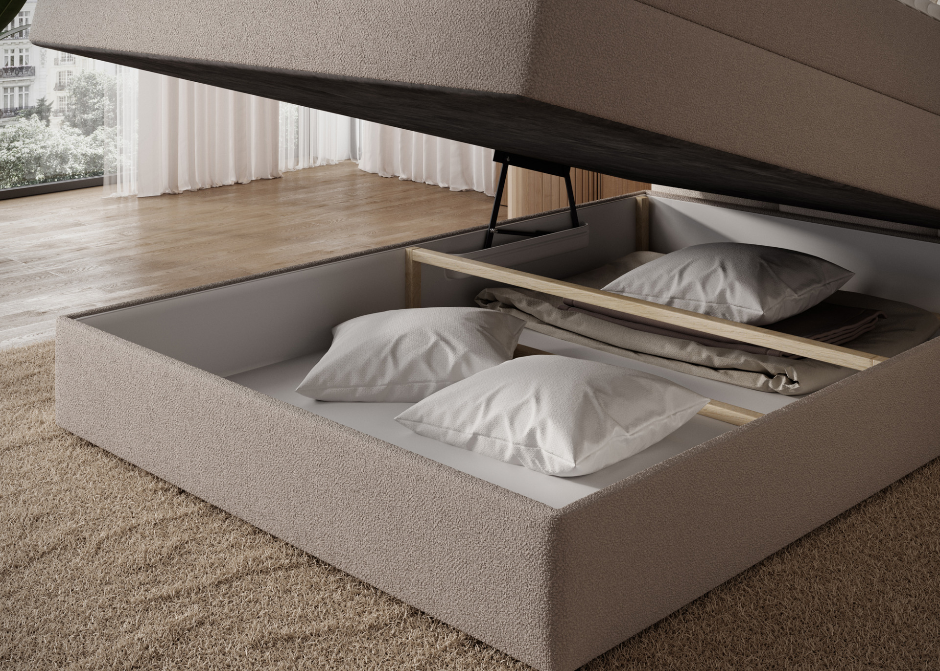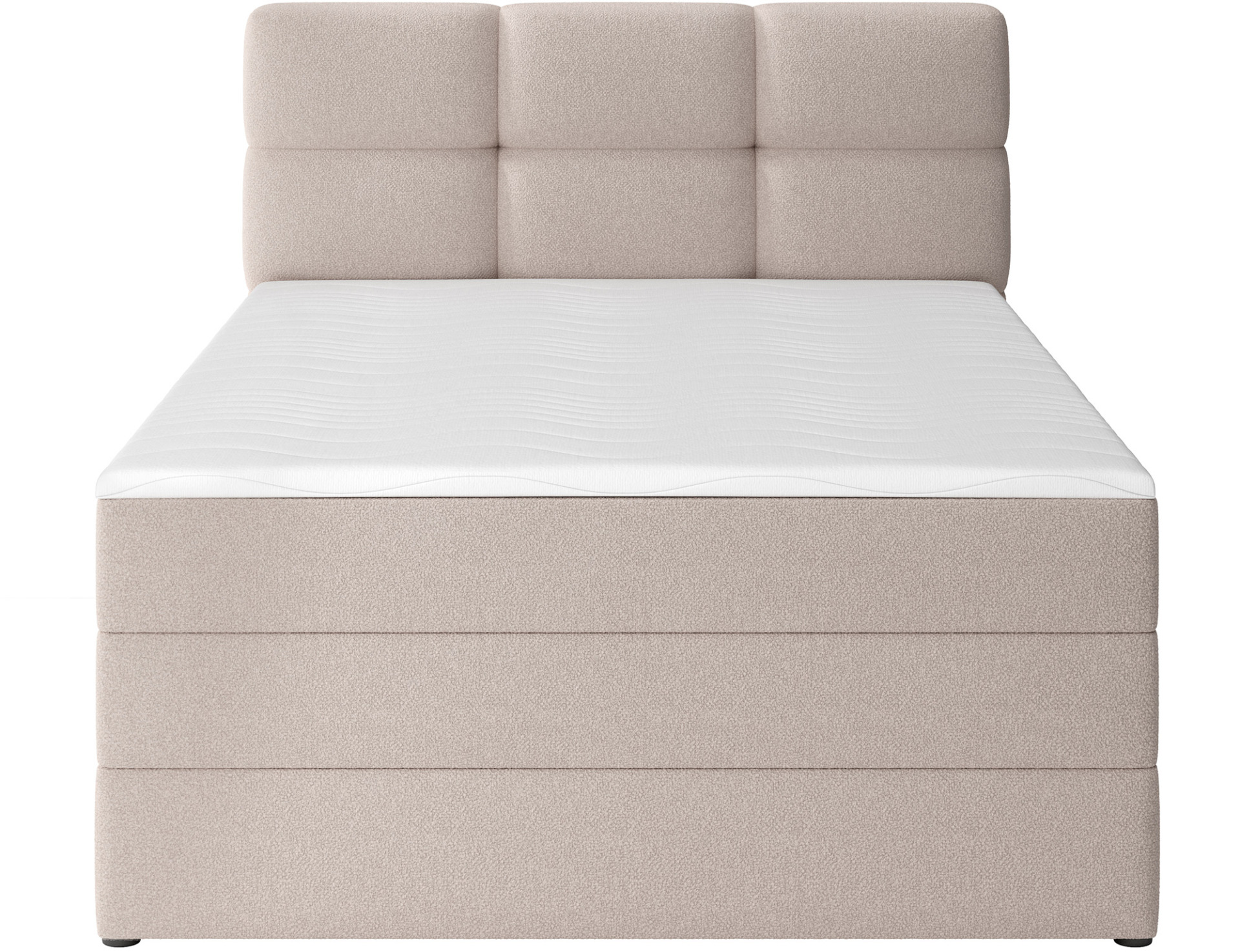 Континентальная кровать Kasped — это современный и функциональный выбор для любой спальни, доступный в двух размерах: 215x121x108 см и 215x141x108 см, что позволяет адаптировать ее к индивидуальным потребностям и внутреннему пространству; конструкция кровати основана на прочном каркасе из массива дерева и ДСП, обеспечивающем стабильность и долговечность на долгие годы, а центральным элементом комфорта является пружинный матрас Bonnell, постоянно встроенный в каркас, который благодаря использованию пружин Bonnell эффективно поддерживает тело, обеспечивая эргономичные условия сна и правильную циркуляцию воздуха; кроме того, кровать оснащена двумя слоями высококачественной пены — пеной T2130 и пеной T2540 — которые, работая в сочетании с пружинами, улучшают эластичность и комфорт использования, адаптируясь к телу и обеспечивая здоровый отдых; весь дизайн выдержан в современном стиле с простыми линиями и элегантной формой, дополненной черными мебельными ножками из прочного пластика — не только устойчивыми, но и эстетически привлекательными. Чрезвычайно практичным дополнением является контейнер для постельного белья, который позволяет удобно хранить одеяла, подушки и другие текстильные изделия, помогая поддерживать порядок в спальне; кровать Kasped сочетает в себе высокое качество изготовления, эстетику и функциональность, что делает ее идеальной как для современных, так и для более классических интерьеров.