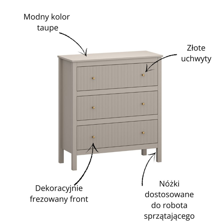 KLEO komoda, 3 stalčiai, pilkšvai ruda