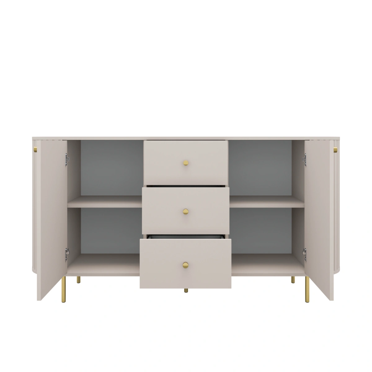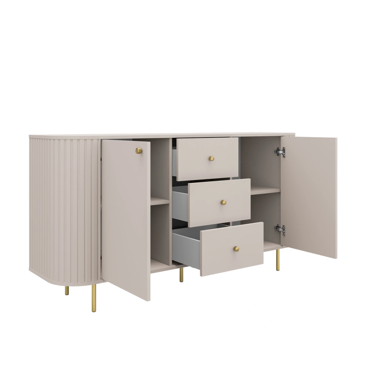 Комод Ovalio – состоит из двух шкафчиков, полок за фасадами и трех дополнительных выдвижных ящиков.