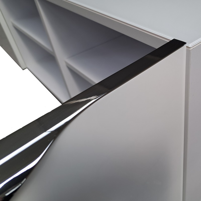 Коллекция Brooklyn отличается современным дизайном, который привнесет новое измерение в любой интерьер. Фасады мебели покрыты глянцевым лаком, что значительно облегчает их чистку. Лакобел, нанесенный на столешницу, не только выполняет функциональную задачу, но и выглядит великолепно. Стеклянная панель в современных вариантах отражает свет, создавая потрясающую ауру в комнате. Подсветка полок идеально рассеивает свет и органично вписывается в общий дизайн. Ручки на фасаде образуют изящную горизонтальную линию, которая благодаря хромированной отделке эффективно отражает свет. Функциональные двери с доводчиками и самозакрывающиеся ящики повышают удобство использования. Хромированные ножки с простой формой и классической отделкой идеально дополняют всю коллекцию.