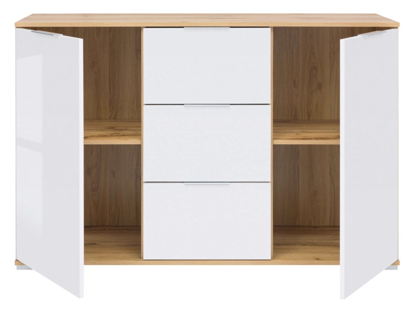 Код товара S383-KOM2D3S-DWO/BIP Символ ZM EAN Ширина 135 см Глубина 41 см Высота 86 см Коллекция Zele Цвет дубово-белый глянцевый Оттенок белый Стиль современный Материал ламинат Количество дверей 2-дверный Количество ящиков 3-ящик Ручка с ручками Производитель Black Red White Тип мебели Комоды НДС 23% EAN 5906123928489