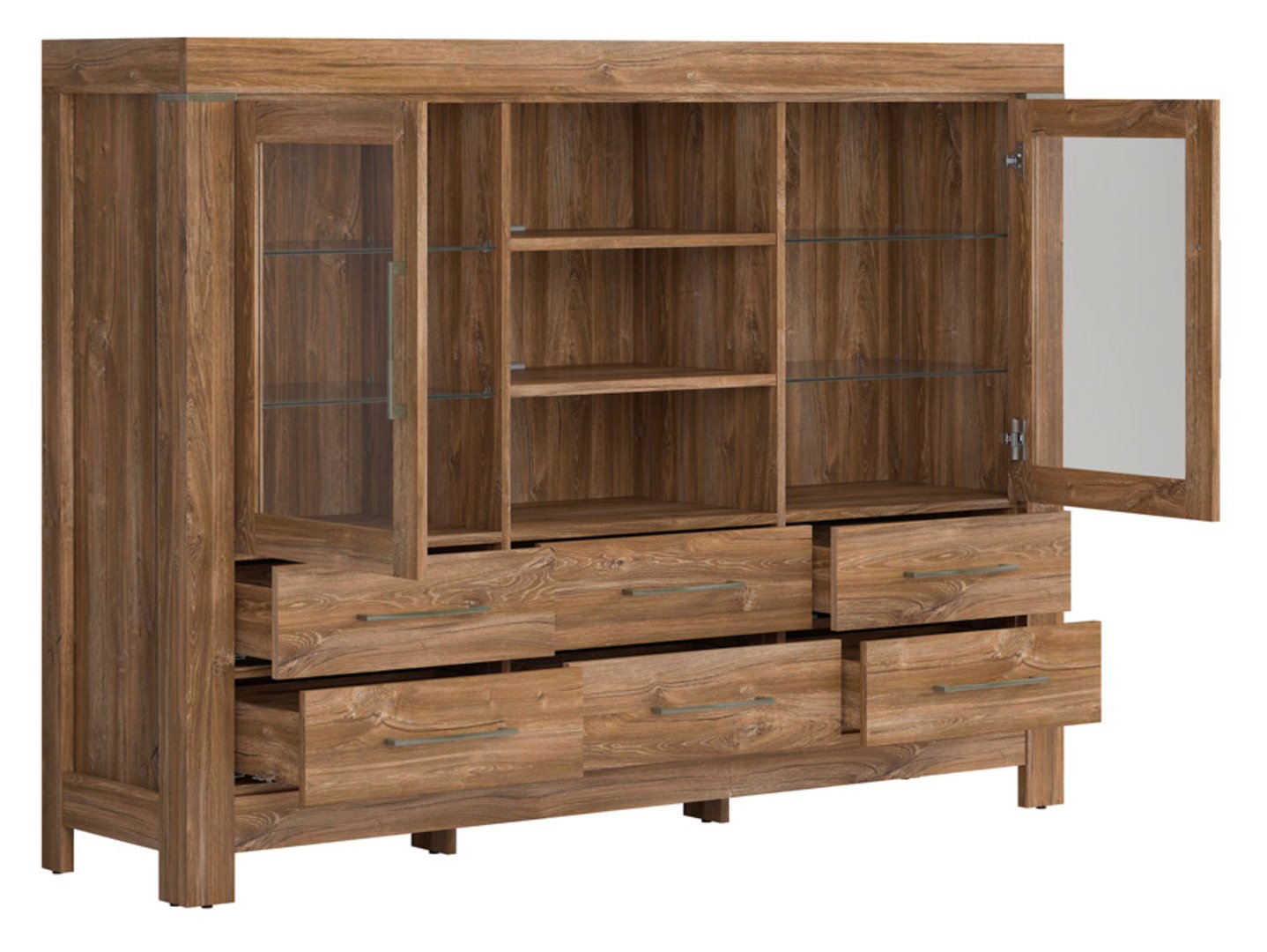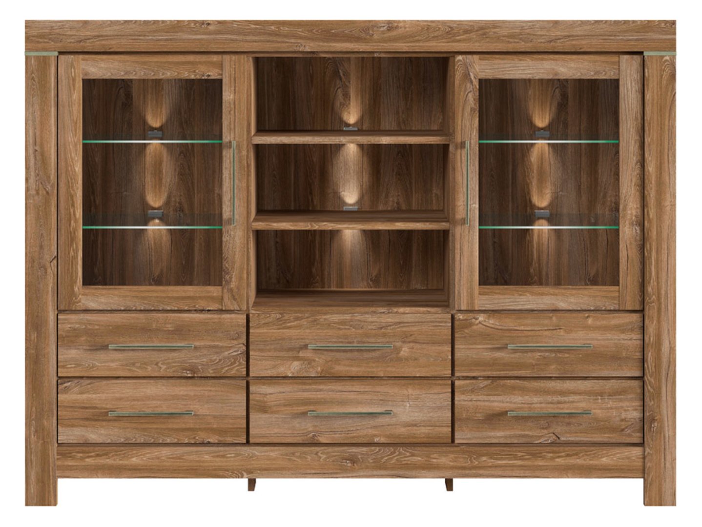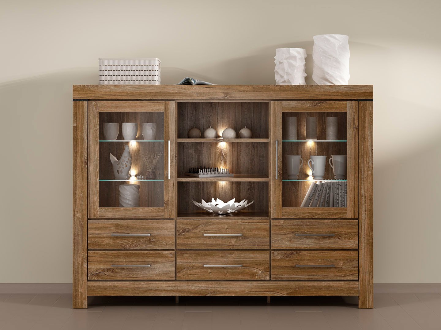 Комод Gent – ваш любимый предмет мебели для стильного и функционального дома. Если вы мечтаете об интерьере, сочетающем стиль и функциональность, коллекция Gent идеально вам подойдет. Этот элегантный комод порадует вас не только своим внешним видом, но и практичными решениями, которые облегчат организацию вашего дома. Комод Gent – настоящая жемчужина в мире мебели. Доступный в теплом цвете ’Дуб Стирлинга», с видимой текстурой и тактильными ощущениями натурального дерева, он непременно добавит очарования любой комнате. Его инновационный дизайн с широкими планками по периметру корпуса и стеклянными фасадами из высококачественного закаленного безопасного стекла придает ему неповторимый характер. Этот предмет мебели не только вместит множество безделушек, но и станет декоративным элементом вашего интерьера. Практичность комода Gent – его главное преимущество. Шесть практичных ящиков и функциональные полки позволяют эффективно хранить и демонстрировать предметы декора или любимые вещи. Теперь у вас все будет под рукой, без беспорядка. Устойчивая столешница этого буфета может использоваться для самых разных целей: от демонстрации декоративных предметов до решения практических повседневных задач. Ламинированная столешница обеспечивает повышенную устойчивость к царапинам и механическим повреждениям, гарантируя долгий срок службы. Буфет Gent — это не только место для хранения, но и отличная основа для декора. Энергоэффективная светодиодная подсветка под полками создает уютную атмосферу и подчеркивает красоту ваших экспонатов. Теперь ваши любимые украшения могут сиять круглосуточно. Фирменные петли и направляющие с системой плавного закрывания гарантируют максимальный комфорт использования. Вам не нужно беспокоиться о шуме ящиков или дверей. Буфет Gent работает плавно и без усилий, делая повседневное использование удовольствием. Коллекция Gent предлагает широкий выбор предметов, которые вы можете свободно комбинировать, создавая уникальные композиции для вашего дома или квартиры. Это позволяет адаптировать мебель к вашим потребностям и предпочтениям, создавая идеальный интерьер. Короче говоря: буфет Gent — это больше, чем просто предмет мебели. Это инвестиция в комфорт и стиль вашего дома. Если вы ищете идеальное сочетание функциональности и эстетики, Gent — это то, что вам нужно. Влюбитесь в функциональность и элегантность — выберите комод Gent уже сегодня!