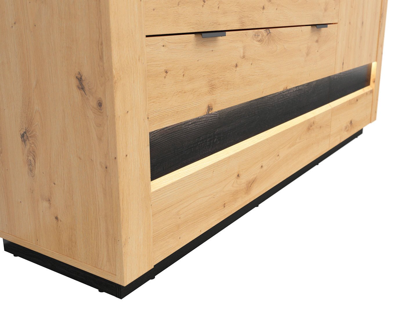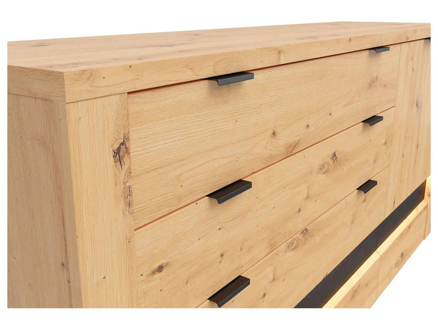 Комод Ostia – прочность и функциональность в вашем доме. Если вы цените прочные и практичные решения в дизайне интерьера, коллекция Ostia вам непременно понравится. Комод Ostia – это предмет мебели, который выделяется не только своим уникальным внешним видом, но и функциональностью. В этой статье вы узнаете больше об этом исключительном предмете мебели. Одним из важнейших преимуществ комода Ostia является его прочная конструкция и вместительность. Этот комод оснащен четырьмя практичными ящиками и вместительным шкафом. Это обеспечивает отличное место для хранения различных вещей, таких как постельное белье, скатерти, домашний текстиль, рождественские украшения и предметы декора. Или, возможно, вам нужно место для одежды и аксессуаров? Комод Ostia идеально справится с этой задачей. Кроме того, широкая столешница позволяет разместить семейные фотографии, подсвечник или фонарь, добавив индивидуальности интерьеру. Внешний вид комода непременно порадует. Цветовая гамма – элегантный оттенок дуба ручной работы, придающий ему естественный, теплый вид. Комод украшен полосой цвета обожженного дерева, которая создает яркий контраст с гладкими фасадами. Светодиодная подсветка еще больше подчеркивает этот декоративный элемент, придавая изделию неповторимый шарм и делая его центральным элементом комнаты. Удобство использования комода также является ключевым аспектом, тщательно продуманным. Матовые черные ручки не только стильны, но и удобны в повседневном использовании. Ящики оснащены направляющими полного выдвижения с тормозом, что делает открывание и закрывание ящиков практически бесшумным. Черное основание комода добавляет ему неповторимый характер и выделяет его среди другой мебели. Комод Ostia — это не просто предмет мебели для спальни. Его можно разместить рядом со шкафом, кроватью и прикроватной тумбочкой, создав функциональную и стильную обстановку в спальне. Однако его универсальный дизайн также делает его идеальным дополнением к гостиной, где он может дополнять витрины и стол, создавая целостный и гармоничный общий вид. Вкратце, комод Ostia сочетает в себе прочную конструкцию, практичность и исключительный дизайн. Это идеальный выбор для тех, кто ищет не просто место для хранения, но и хочет, чтобы их интерьер излучал стиль и элегантность. С Ostia вы можете создать функциональный и красивый интерьер, который порадует всех, кто посетит ваш дом.