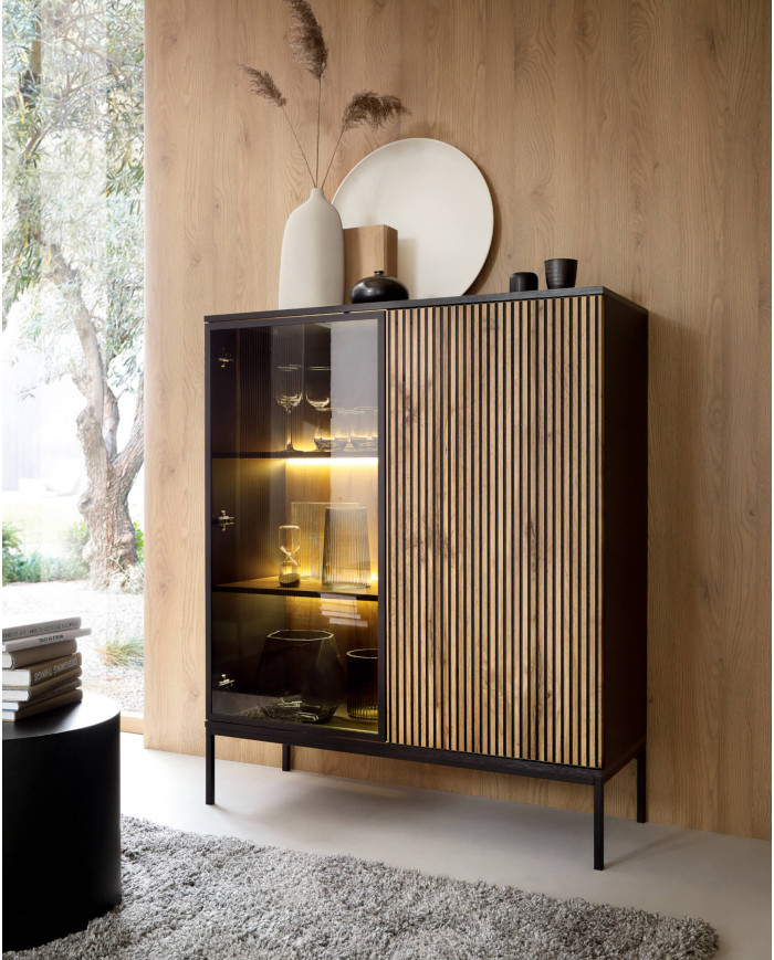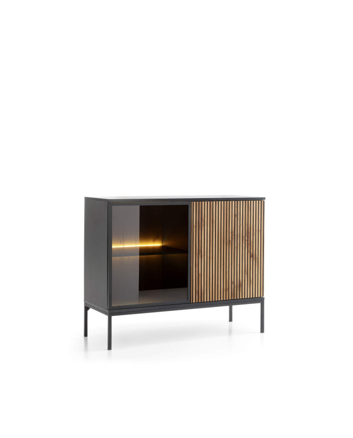Sento K104 komoda, durelėmis, šviestuvais, juoda/Wotan ąžuolas