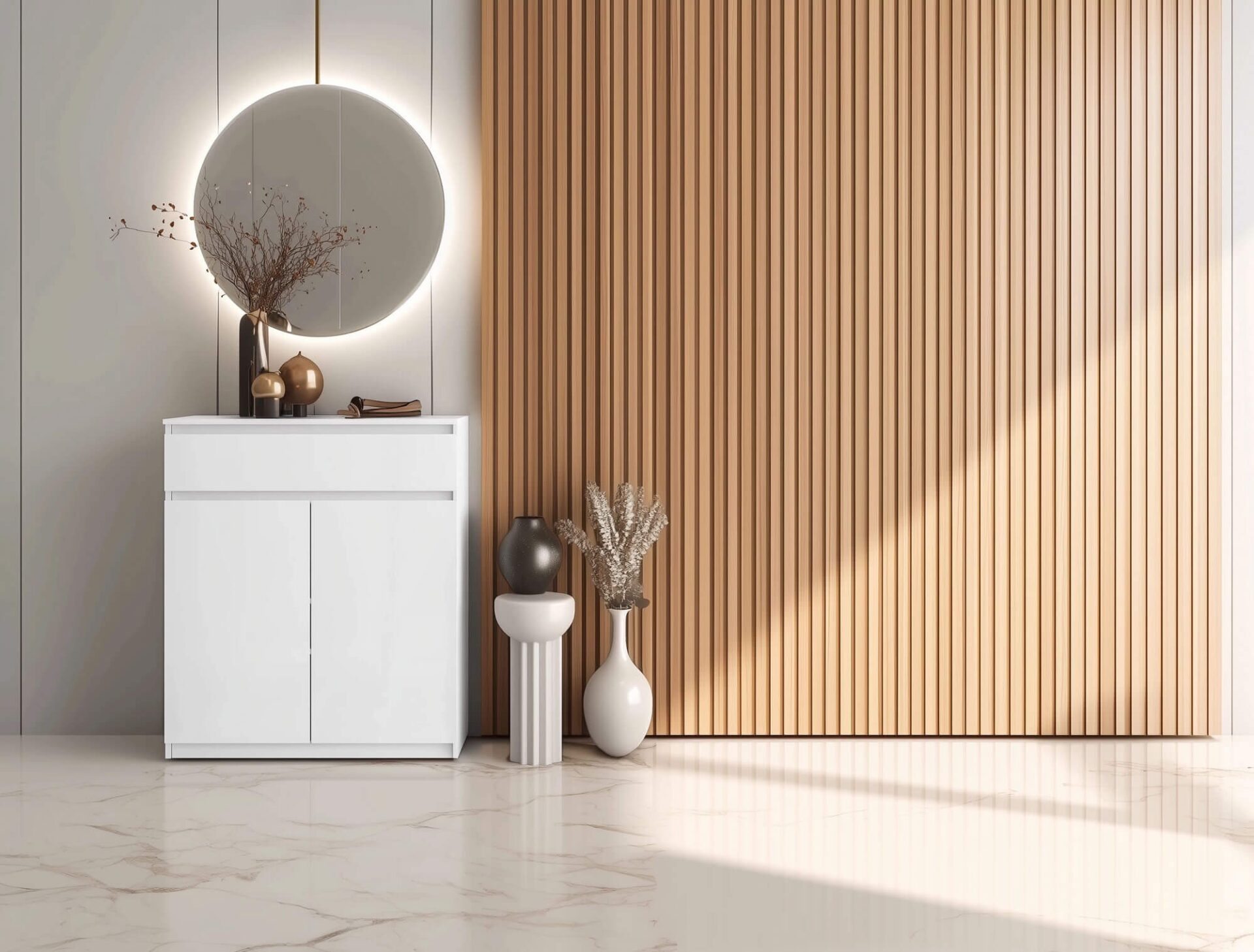 Дизайн: Стильный двухдверный комод с выдвижным ящиком.