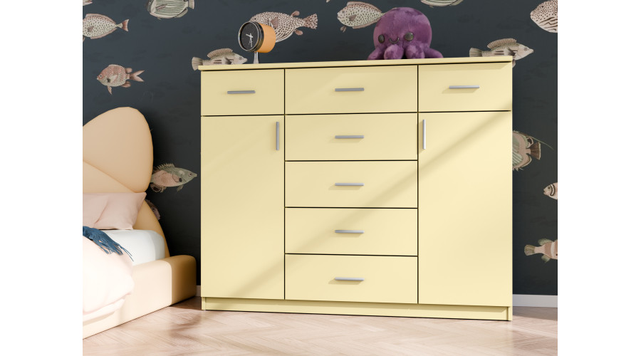 Комод Silva шириной 140 см разработан как универсальный элемент системы хранения для различных помещений в доме. Благодаря сочетанию выдвижных ящиков и запирающихся шкафчиков, он отлично подойдет для спален, детских комнат, комнат для подростков и гостиных, где порядок и функциональное использование пространства имеют первостепенное значение.