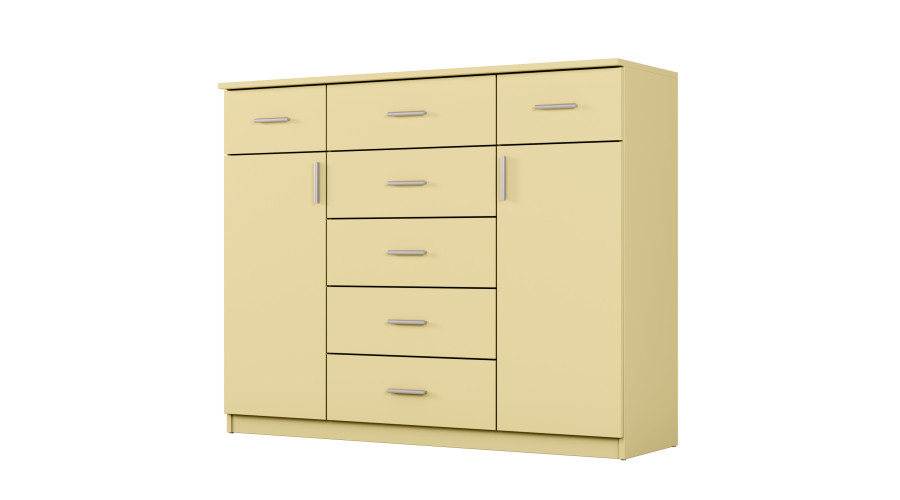 Цвет «Ваниль» привносит в интерьер светлый, успокаивающий тон, визуально осветляя пространство и хорошо сочетаясь с нейтральными стенами и пастельными аксессуарами. Это универсальное решение для интерьеров, ценящих легкость и гармонию. Комод Silva изготовлен из ламинированной плиты толщиной 18 мм, что обеспечивает структурную стабильность и устойчивость к повседневному использованию. Края защищены ПВХ-кромкой, а задние стенки выполнены из плиты HDF, что усиливает всю конструкцию. Изделие произведено в Польше и может быть изготовлено на заказ по цвету, размерам и фурнитуре, что позволяет адаптировать комод к вашим индивидуальным потребностям.
