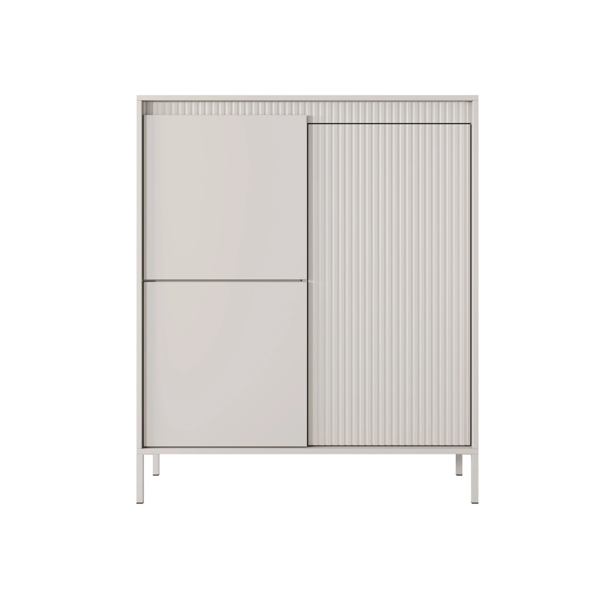 Aukšta komoda 3D su grioveliais fasaduose Senso smėlio spalvos