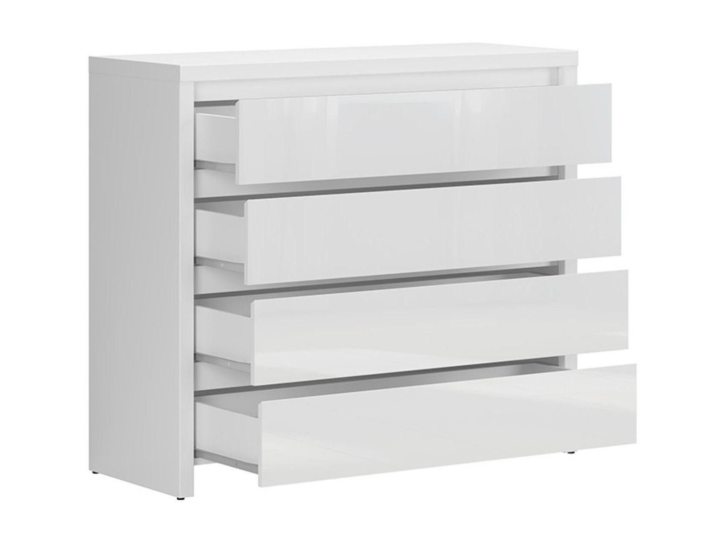 Комод Larios – функциональность и стиль. Комод Larios с четырьмя ящиками – идеальное решение, сочетающее функциональность и изысканный стиль, придающее вашей комнате порядок и эстетическую привлекательность. Независимо от того, нужно ли вам место для хранения одежды, аксессуаров или документов, комод Larios оправдает ваши ожидания, предлагая удобное пространство для организации и хранения различных предметов. Комод Larios выполнен в белом цвете с матовой отделкой корпуса и глянцевыми фасадами. Эта цветовая гармония добавляет изысканности и свежести вашему интерьеру, делая комод не только практичным предметом мебели, но и декоративным элементом. Изделие отличается элегантностью, что делает его идеальным дополнением к различным стилям интерьера. Предпочитаете ли вы современные, минималистичные интерьеры или более классические, комод Larios идеально подойдет любому вкусу, добавив неповторимый характер вашему интерьеру. Фасады комода имеют скошенные края, что не только придает изделию уникальный вид, но и делает открывание ящиков очень интуитивно понятным. Это обеспечивает быстрый и удобный доступ к хранящимся вещам, упрощая повседневное использование. Комод идеально подходит для размещения любимых книг, семейных реликвий или фотографий. Это также прекрасное место для ярких аксессуаров, дополняющих белый цвет изделия. Фонарь, цветок, статуэтка или ароматическая свеча — выбор за вами, чтобы украсить интерьер вашей гостиной, спальни или кабинета. Комод Larios — это компактный предмет мебели, обеспечивающий максимальную функциональность и безупречную эстетику. Это идеальное сочетание практичности и стиля, делающее повседневное использование пространства одновременно комфортным и красивым.