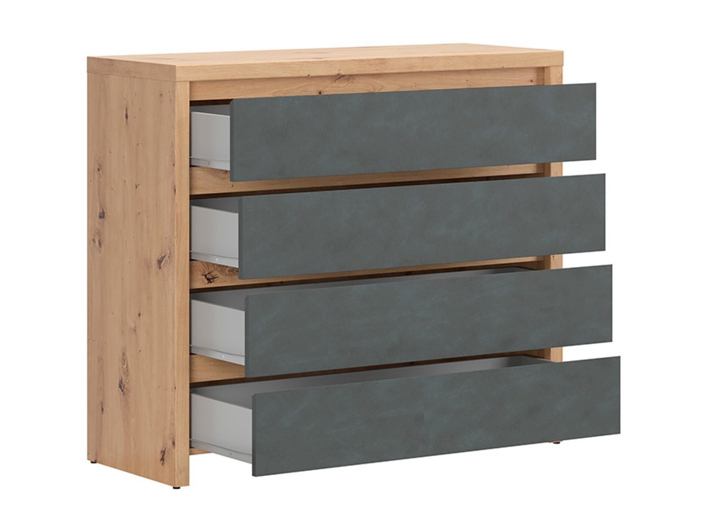 Komoda su keturiais stalčiais LARIOS 105 cm, dirbtinio ąžuolo spalvos/matera