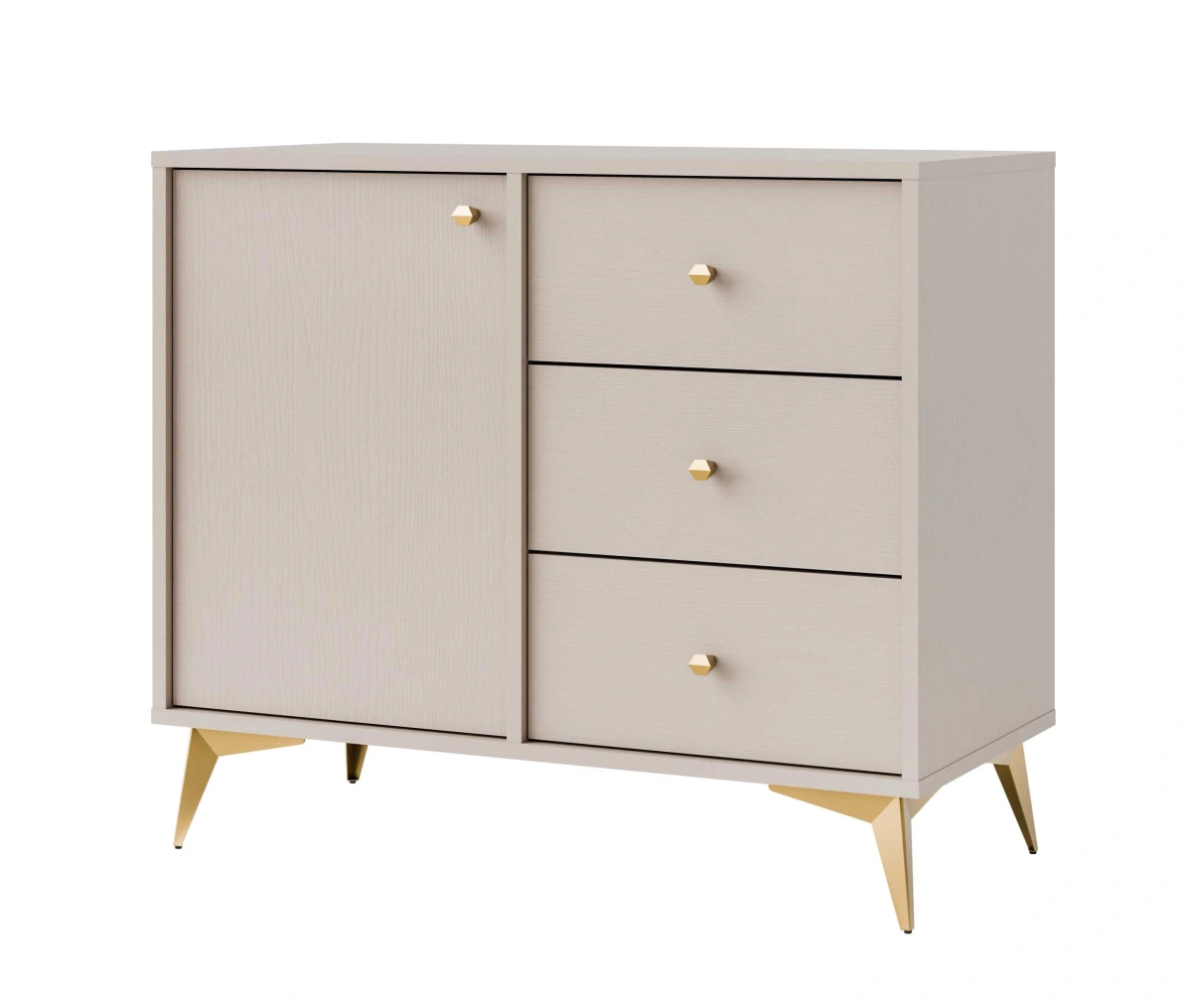 Комод Tokyo 1F3S песочно-бежевого цвета – состоит из тумбы и трех выдвижных ящиков.
