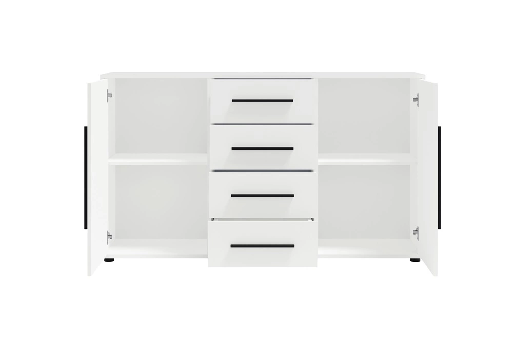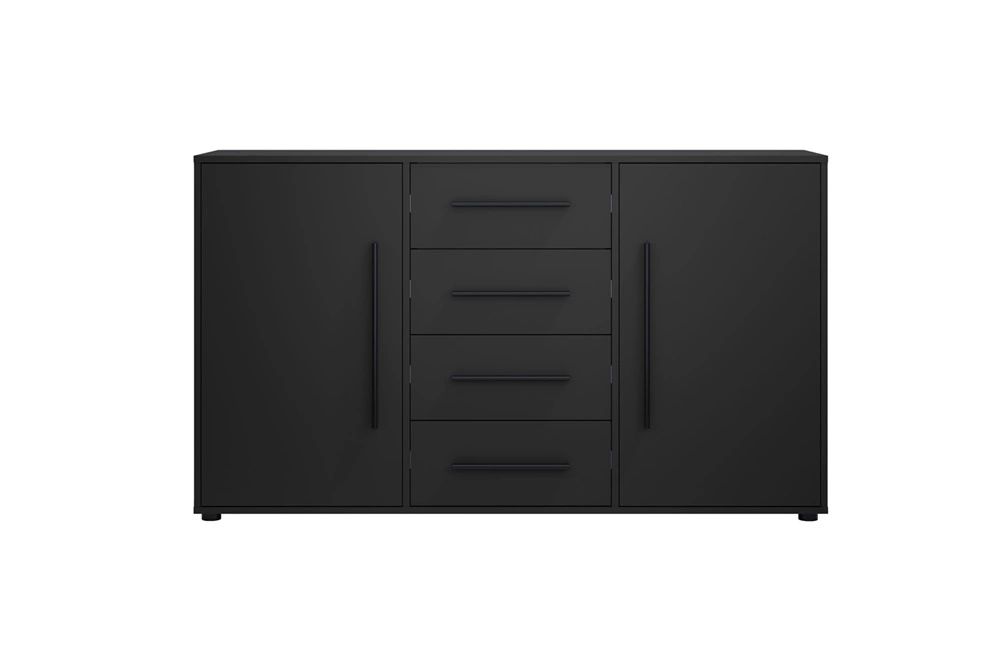 Комод имеет 4 выдвижных ящика и 2 дверцы. Он гарантирует комфортное и беспроблемное использование, а также долговечность на долгие годы. Классическая черная отделка добавит элегантности и характера помещению, делая комод Maxione идеальным вариантом для гостиной с оригинальной отделкой, гостиной или современной спальни. Комод также хорошо подойдет в качестве офисной мебели.