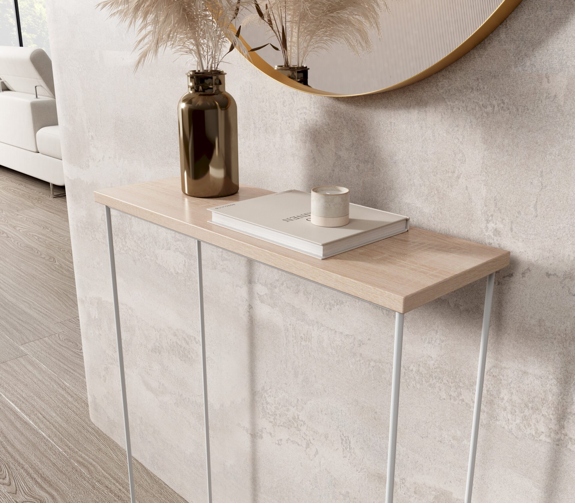 Консольный столик Sili с проволочными ножками идеально дополнит любой интерьер. Его универсальный дизайн позволяет использовать его как в современных, так и в более классических интерьерах. Он может служить практичным элементом в прихожей, элегантным дополнением к гостиной или стильным рабочим местом в кабинете.