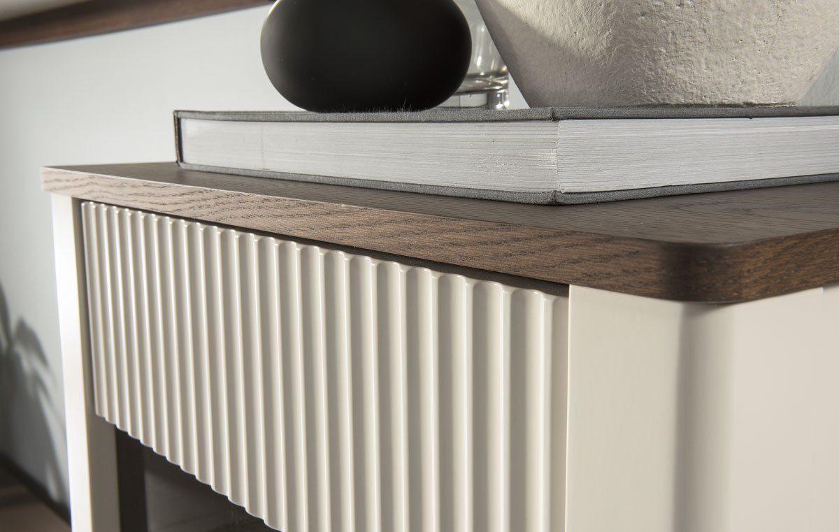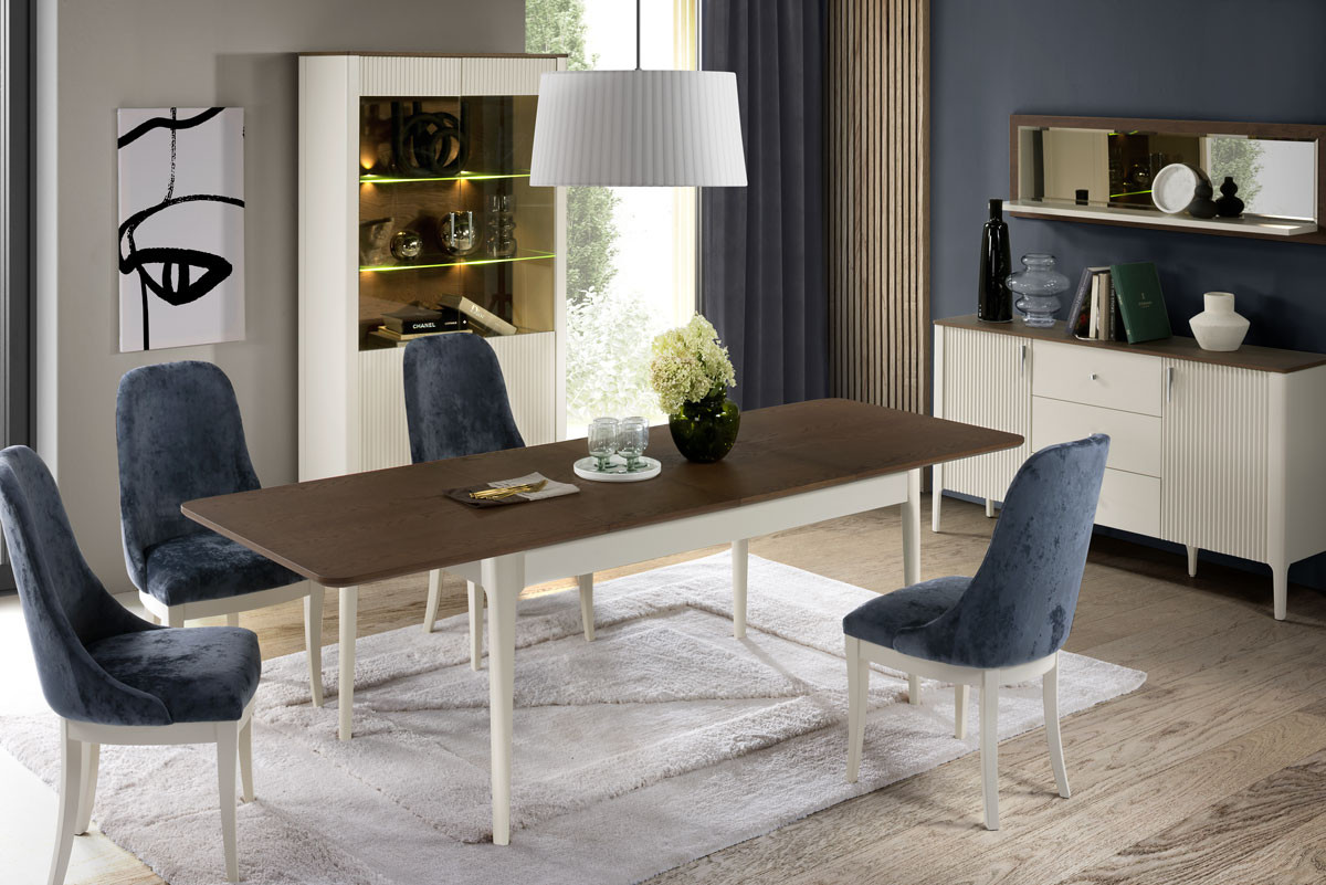 Используются петли и направляющие с бесшумной системой закрывания. Мебель WENECJA с модным фасадом добавит уютного очарования как гостиной, так и столовой.