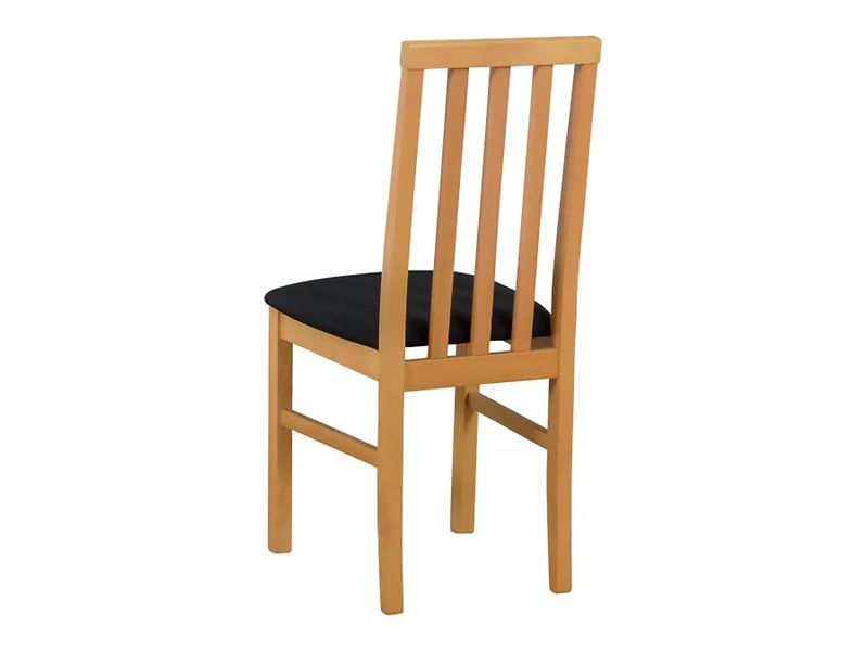 Стул имеет реечную спинку из массива бука, которая не только выглядит впечатляюще, но и обеспечивает адекватную поддержку спины. Обитое черным наполнителем сиденье наполнено мягким пенополиуретаном, что гарантирует комфорт даже во время длительных посиделок за столом.