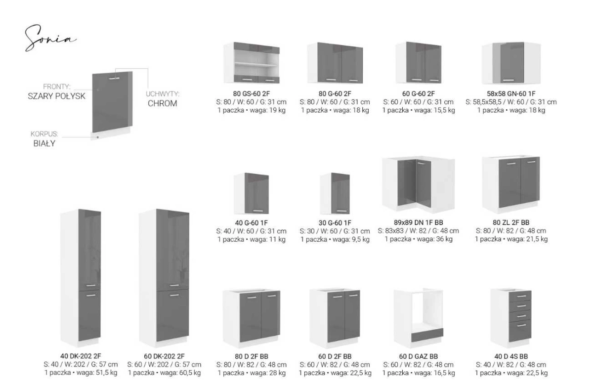 Кухня Sonia — это современный и интересный набор мебели, который впишется в любой интерьер. Благодаря стеклянной витрине она станет декоративным акцентом, придавая помещению изысканный и интересный вид. Прочные ручки добавляют мебели характера и облегчают доступ к хранящимся внутри продуктам.