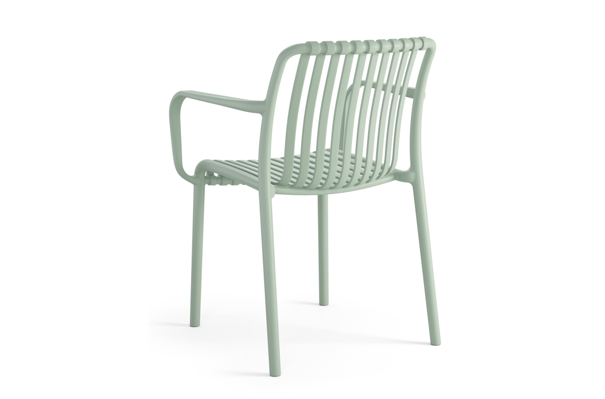LEONEL Pastel Green – MODERNI PLASTIKINĖ SODO KĖDĖ (virtuvėje, kavinėje, sode) [SUDEDAMA VIENĄ KARTĄ]