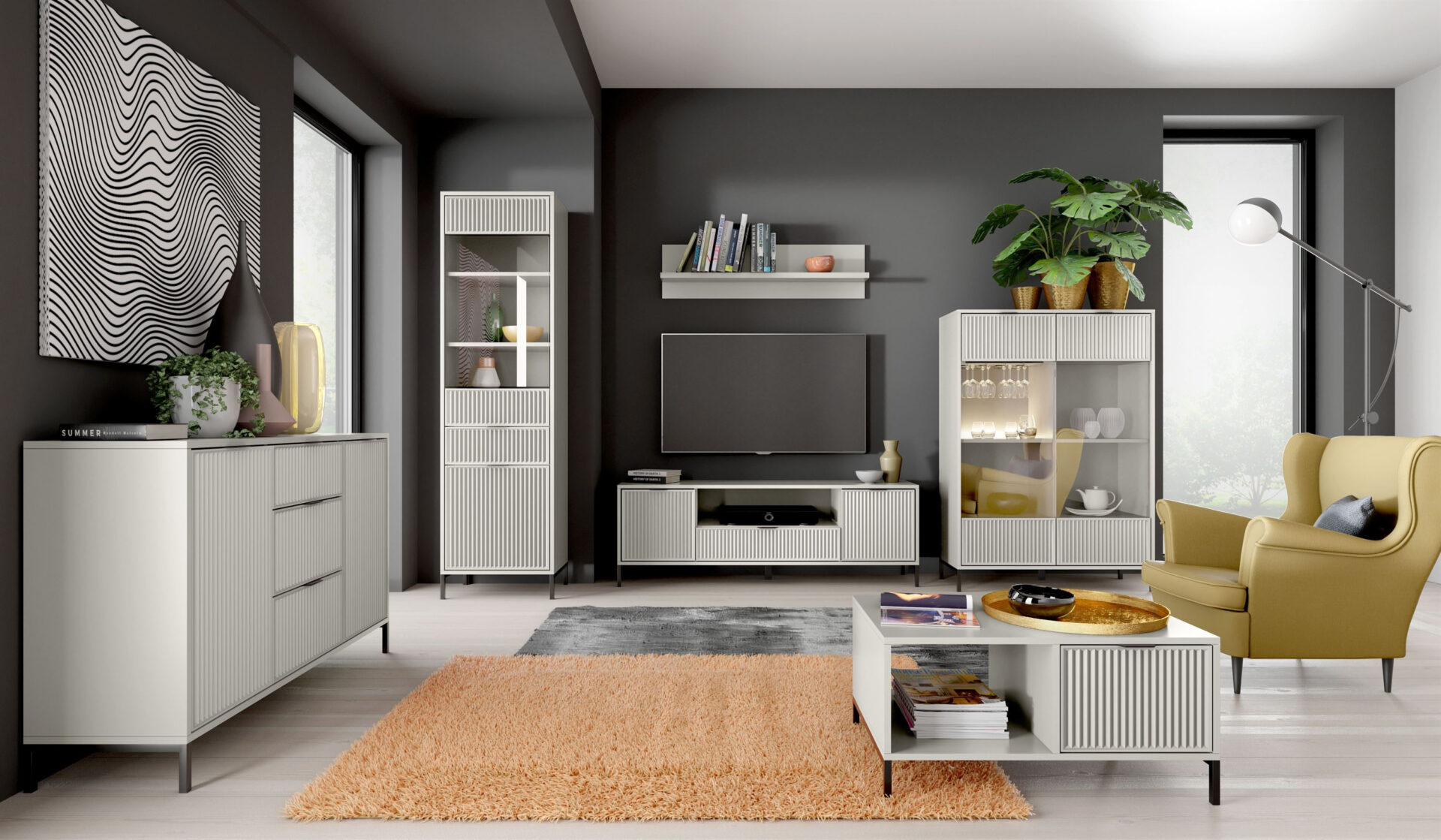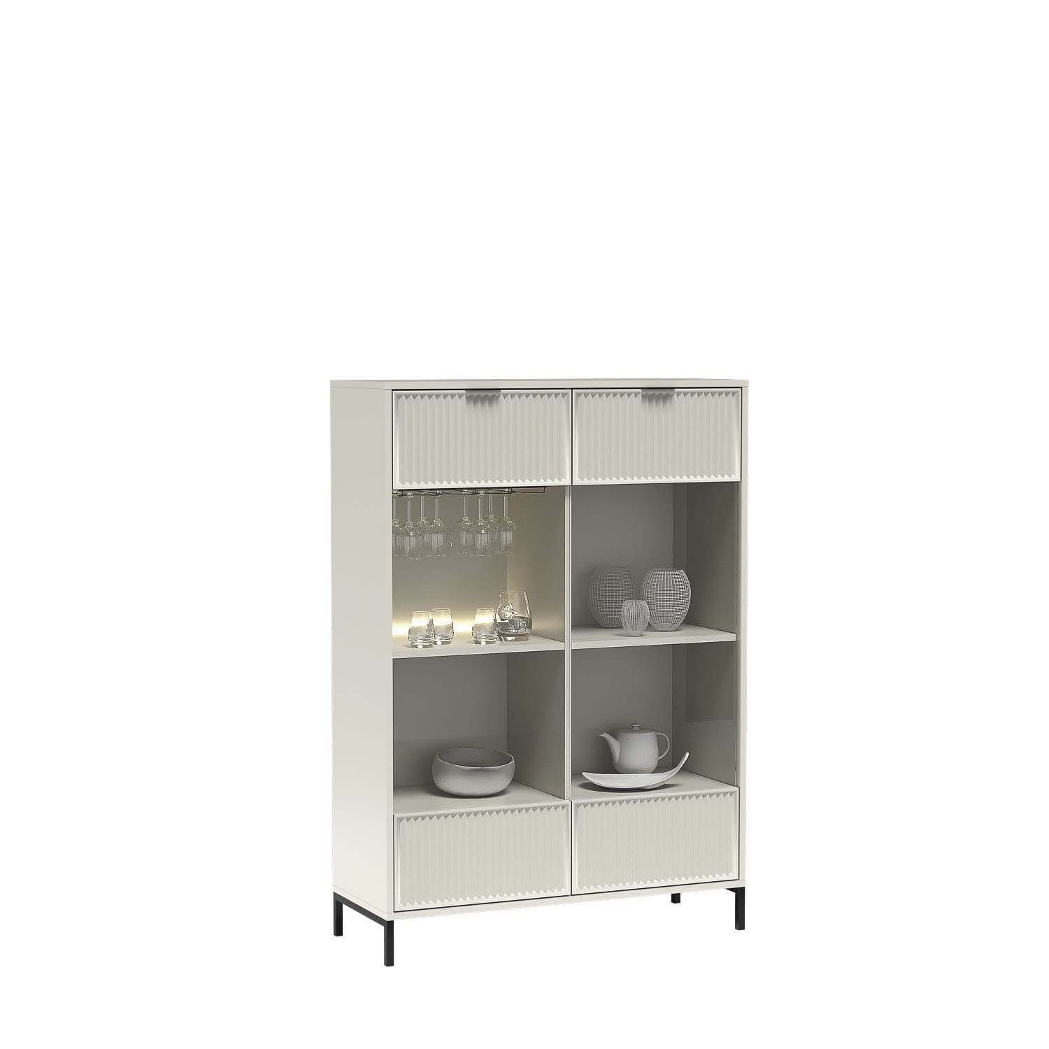 Элегантный двухдверный шкаф-витрина Cashmere от Jarstol добавит стиля и изысканности любому интерьеру. Его современный дизайн идеально вписывается в актуальные тенденции дизайна интерьеров, создавая гармоничную композицию в гостиной, столовой или кабинете. Цвет Cashmere корпуса и передней панели добавляет элегантности и уюта, делая его центральным элементом любой комнаты. Шкаф-витрина не только красив, но и функционален. Благодаря просторным полкам вы легко сможете выставить свою любимую посуду, бокалы или декоративные вазы. Стоит отметить инновационную светодиодную подсветку, которая освещает внутреннюю часть полок, создавая потрясающую атмосферу во время романтических ужинов или семейных встреч. Это идеальное место для демонстрации коллекции тарелок или уникального сувенира с историей. Шкаф-витрина LINKaSTYLE также выделяется своими оригинальными рифлеными фасадами, которые придают ему неповторимый характер. Сочетание этой детали с прозрачным стеклом придает изделию современный и элегантный вид, идеально дополняя черные металлические ножки. Эти ножки не только придают витрине великолепный внешний вид, но и обеспечивают практичность – робот-пылесос может легко проехать под витриной, облегчая повседневную работу.