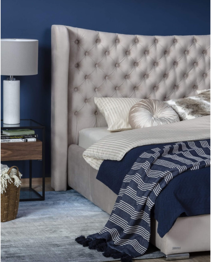 Классическая мягкая кровать с высокими боковыми панелями и красивой стёжкой пуговицами. Кровать Lancaster предлагает просторное спальное место размером 180×200 см. Этот предмет мебели в классическом стиле станет настоящим украшением романтической спальни, добавив нотку изысканной элегантности. Его умеренные размеры делают его идеальным дополнением даже для небольших помещений. Комплект можно дополнить ящиком для хранения постельного белья и основаниями для матрасов. Варианты покупки и образцы обивочных тканей доступны в мастере выбора товара.