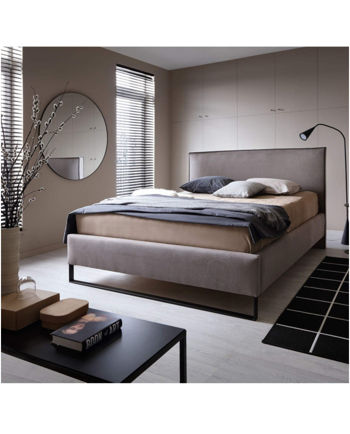 Современная минималистичная кровать Winter со спальным местом 160×200 см подчеркивает свой индустриальный характер металлическими направляющими в качестве ножек. Высокое мягкое изголовье, контрастирующее с холодными металлическими ножками, украшено престижной черной окантовкой по краям. Эта кровать органично впишется практически в любой современный интерьер, став настоящим акцентным элементом. В комплект не входят матрас, ящик для хранения постельного белья или подъемник с рамой. Дополнительные аксессуары, а также образцы тканей доступны в конструкторе изделий. Кровать требует минимальной сборки и доступна в широком ассортименте обивочных тканей.