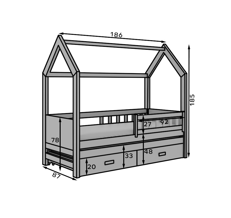 Кровать-домик Jaspis — идеальное решение для семей, которые ценят функциональность и эстетику. Этот элегантный двухцветный предмет мебели разработан с учетом максимального использования пространства и повседневного комфорта. Кровать состоит из двух уровней — основной спальной зоны и выдвижной секции, идеально подходящей для дополнительного спального или игрового пространства. Дополнительным преимуществом являются просторные ящики под кроватью, которые помогают хранить постельное белье, игрушки и одежду, обеспечивая порядок в детской комнате. Прочная конструкция из безопасных материалов и устойчивый каркас гарантируют комфорт и безопасность. Кровать-домик Jaspis — это функциональный и стильный предмет мебели, который идеально впишется в любой интерьер. Доступная в различных цветах, она позволяет подобрать вариант, соответствующий индивидуальным эстетическим предпочтениям вашего ребенка!